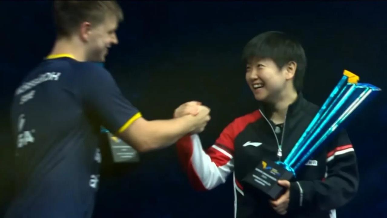 孙颖莎和每个球员握手时目光都是真诚友善的。 在她眼神里你读不到傲慢,也读不到虚伪