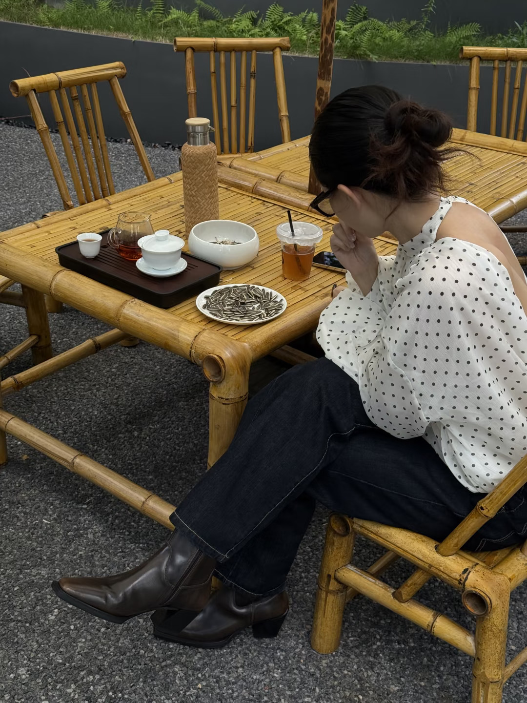 上一秒优雅看展,下一秒就坐路边嗑瓜子了