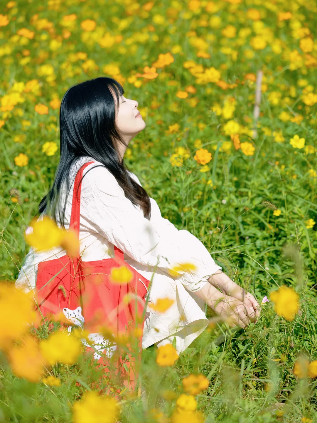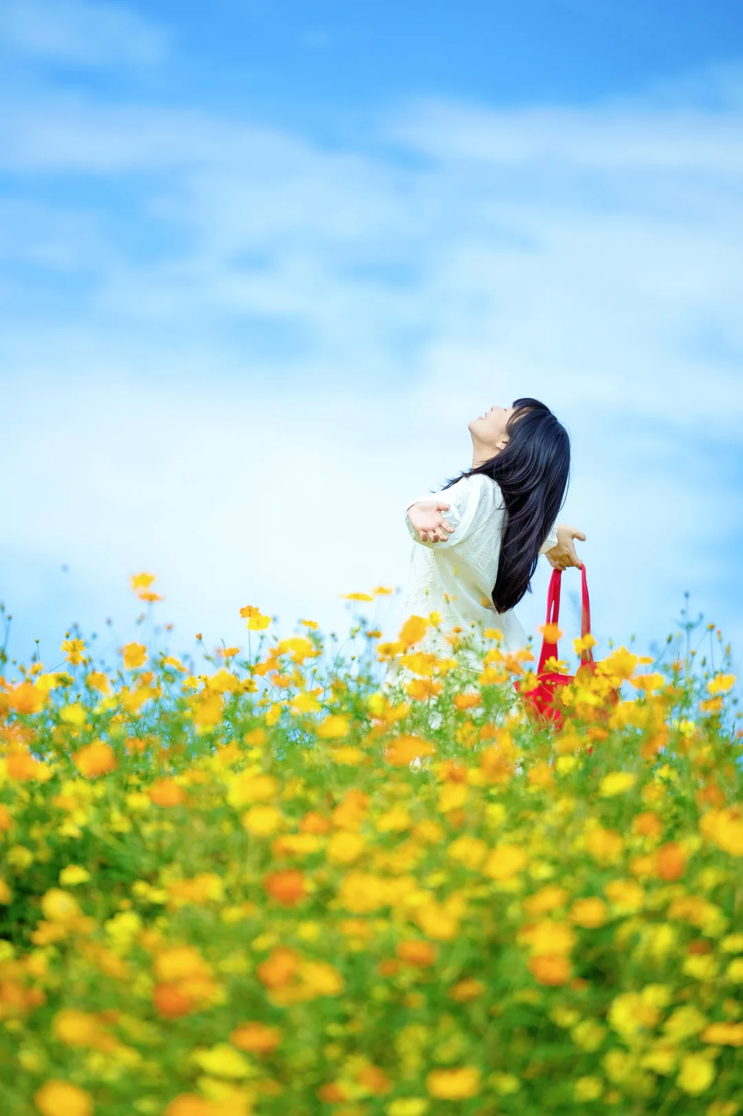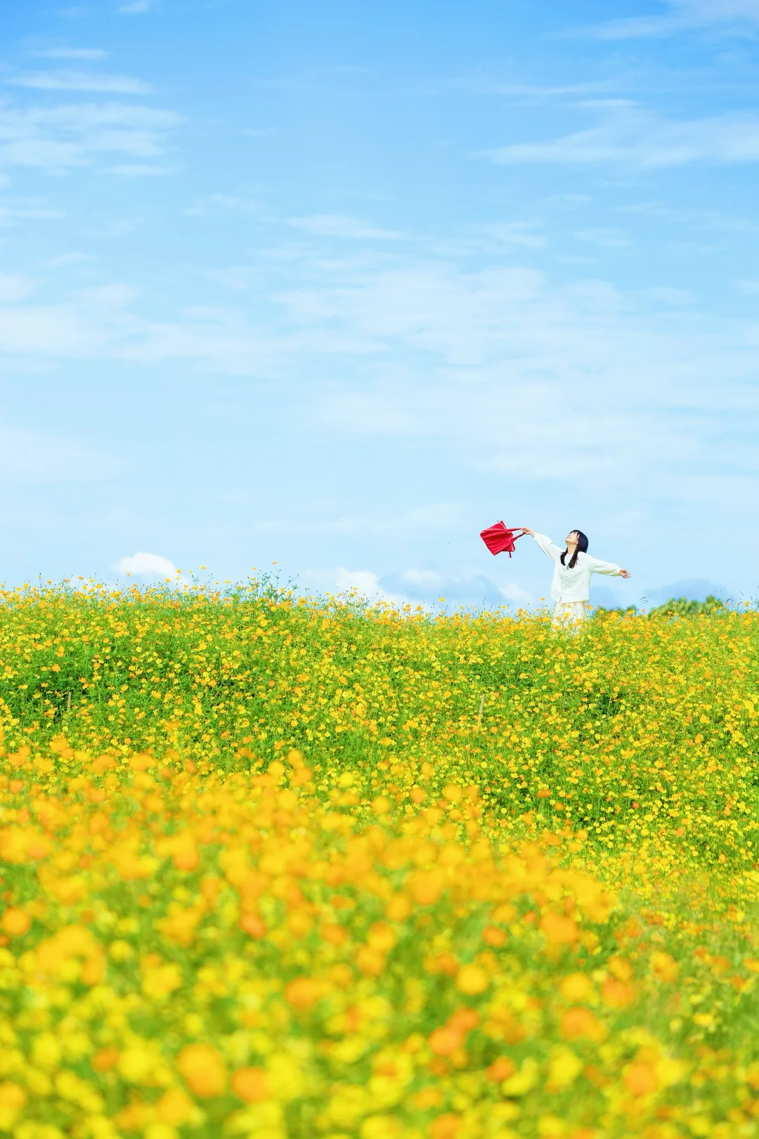 ✅站在花海最高处,用长焦拍人在花海里,超好看