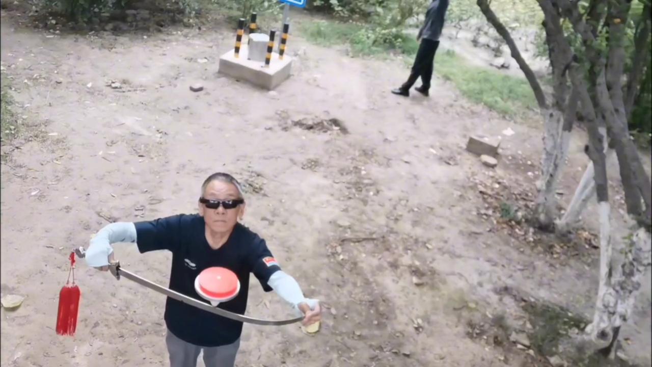 大爷晨练瞎捣鼓新玩法-剑刃推磨!