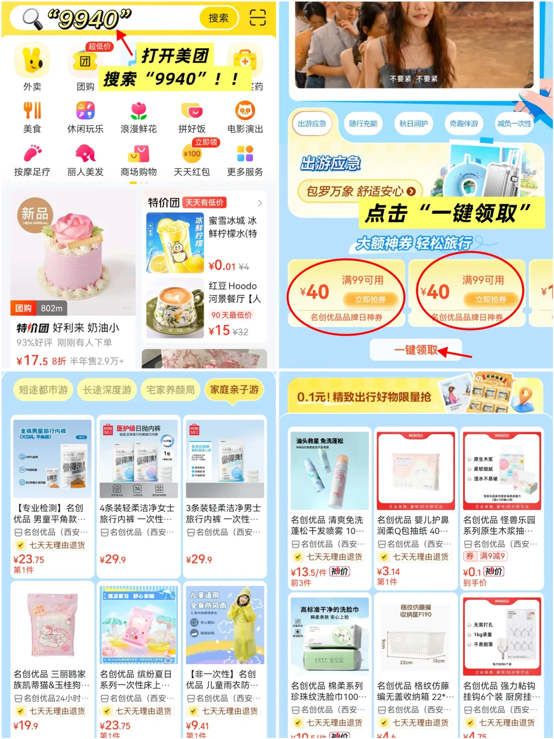即日起到9月30日,上美团搜“9940”,进入会场还能抢满99减40元的大额券!(9.28-9.30可核销)