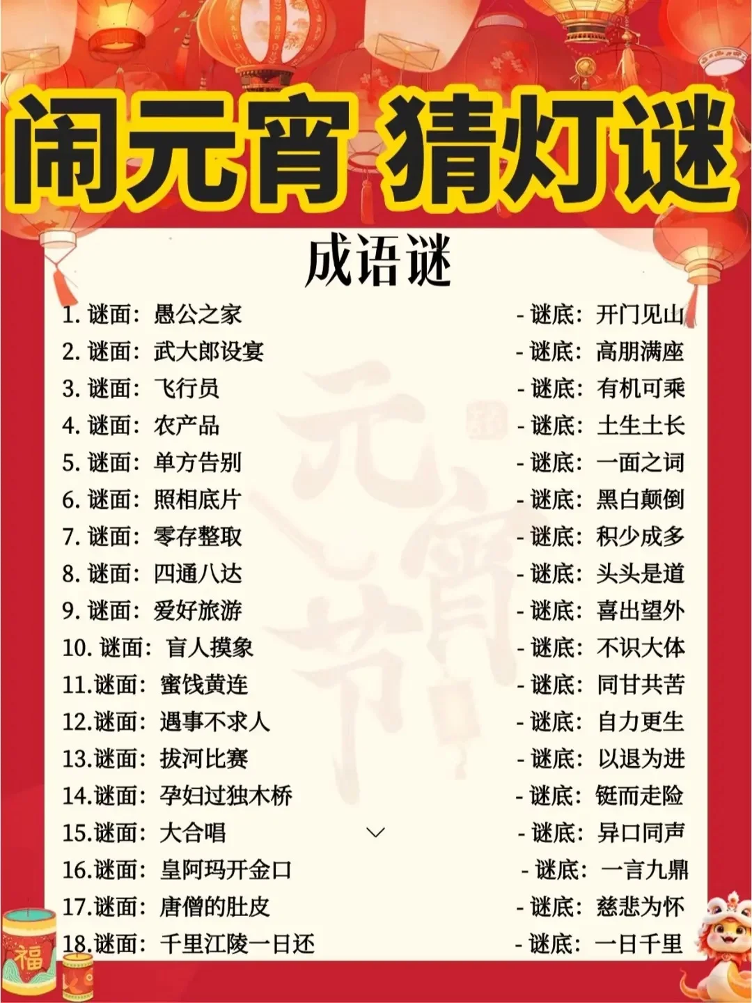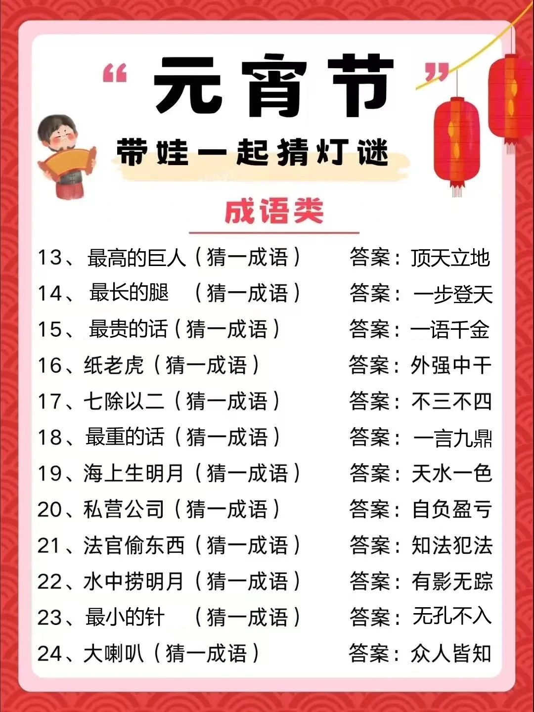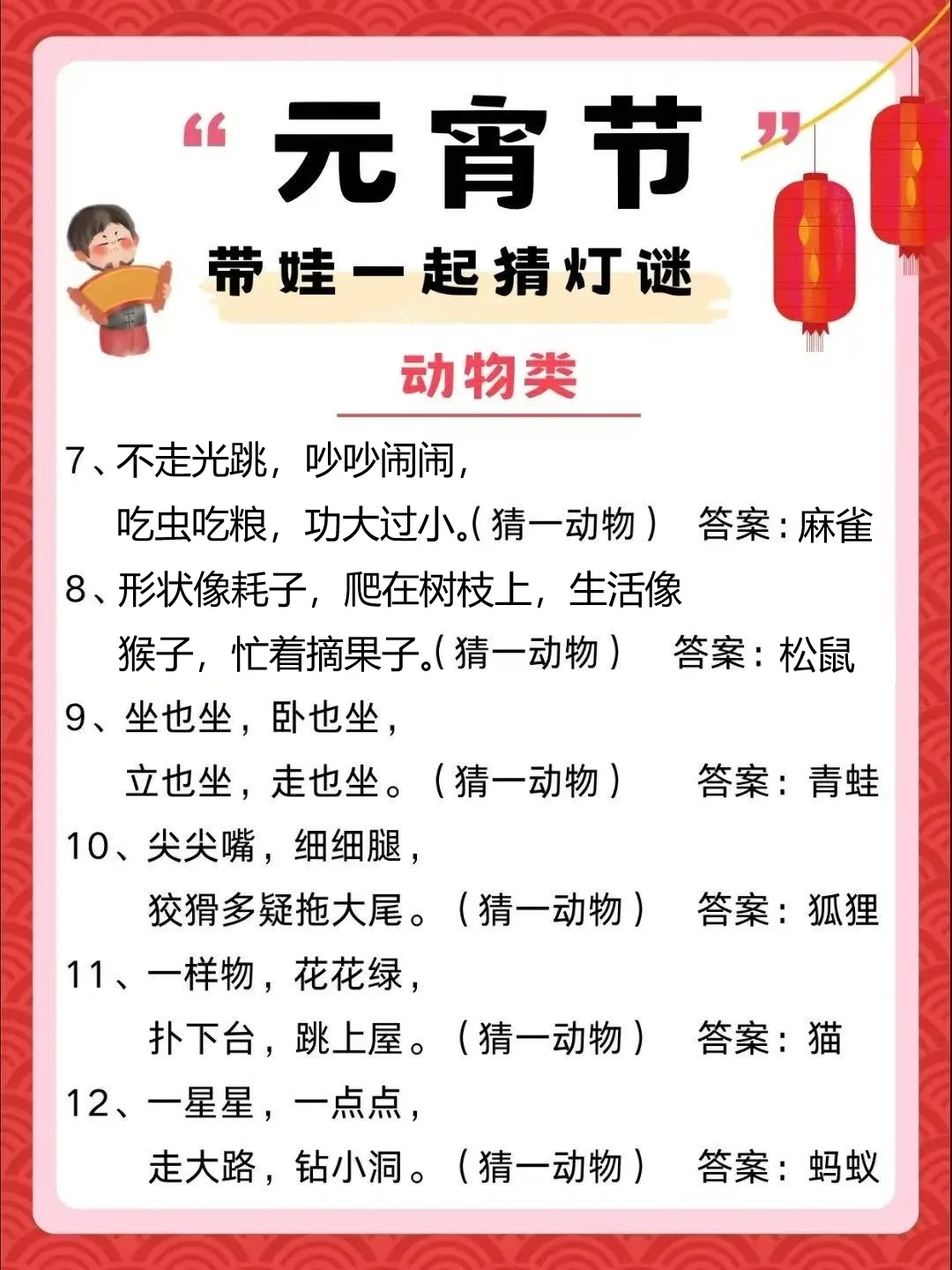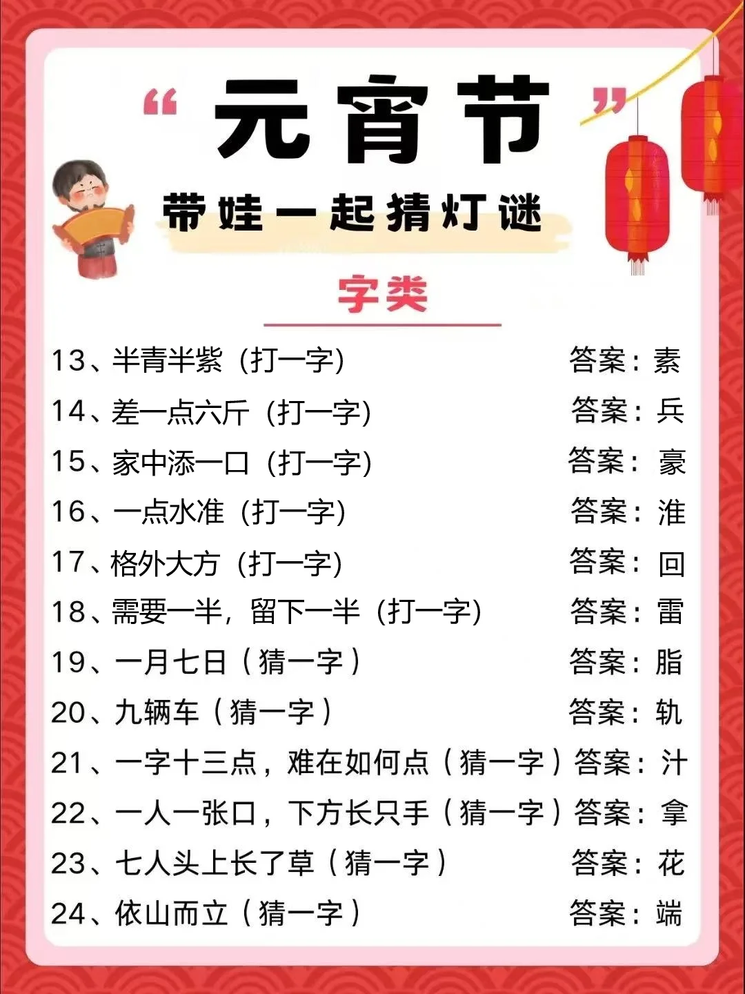 元宵节猜灯谜是闹元宵的传统,为大家分享元宵节灯谜带答案,家长们可以陪孩子一起猜谜语,陪孩子和爱人过一个开心难忘的元宵节!