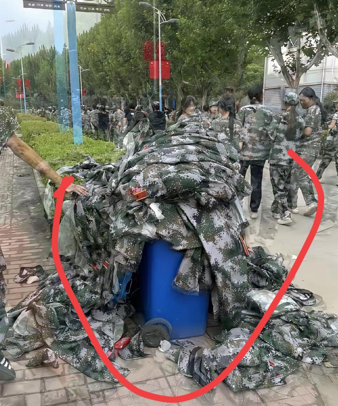 这军训服堆成山, 学校看了都得沉默! 好好的军训刚结束,迷彩服就被堆在垃圾桶
