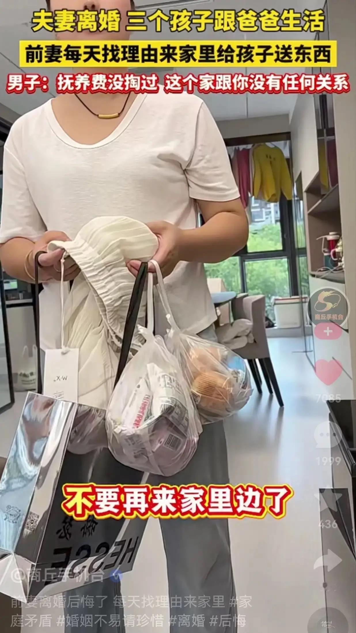 离婚后女子天天上门送东西,前夫不解:咋跟没离婚似的?真相让人鼻酸 挺心酸!难道离婚了,就成了仇人了吗?河南一女子离婚后,三个孩子跟前夫过,她却天天找理由上门送东西,前夫起初还觉得烦。 女子每天雷打不动来,今天说“孩子校服该换了”,明天拎着刚炖的排骨,后天又带了新文具。前夫忍不住吐槽:“离婚协议写得明明白白,你不用天天跑。”女子只笑笑,放下东西就走,从不多说。 直到有次前夫加班,让大女儿给妈妈打电话说不用来,女儿却哭着说:“妈妈说天天来,才能多见我们几眼。”前夫愣了,想起每次女子来,都偷偷盯着孩子吃饭、写作业,眼神里全是不舍。原来那些“理由”,不过是妈妈想见孩子的借口。离婚没成仇人,只是多了个偷偷爱孩子的人。