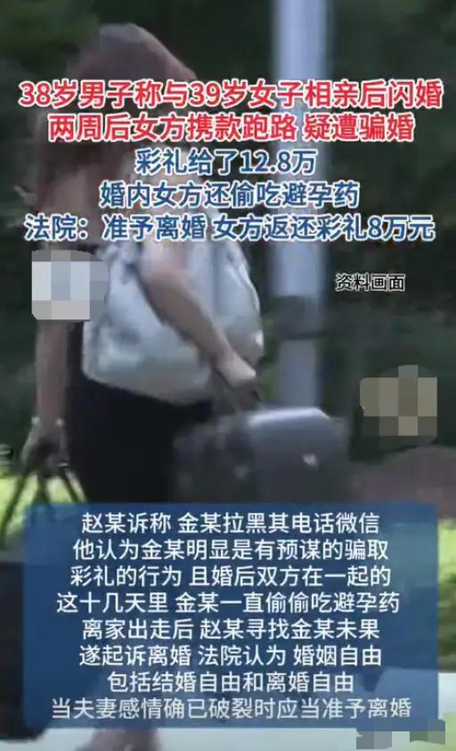 河南男子相亲闪婚备孕,妻子事后偷吃药避孕,卷走6千拉黑还被起诉 河南泌阳,一男子相亲闪婚,满心期待备孕,却发现妻子每次事后偷偷吃避孕药,还卷走家里6千块回娘家拉黑他,男子怒诉骗婚要回12.8万彩礼。 两人相亲时看对眼,没处多久就办了婚礼,男子觉得日子总算有了奔头,一门心思想要个孩子。可每次同房后,妻子总借口去倒水,回来时手里多了颗“维生素”,他没多想,直到某天收拾抽屉,发现药盒上写着“紧急避孕药”,当时就懵了。 没等他问清楚,妻子说要回娘家看看,他正好要出差,还特意留了6千块现金让她路上用。结果出差第三天,他发消息没人回,打电话提示已被拉黑,回家一看,家里除了他的东西,妻子的行李全没了。 男子又气又无奈,想起当初给的12.8万彩礼,大半是借的,现在婚没了,钱也没了,只能起诉要回彩礼。网友都说,这哪是结婚,分明是冲着彩礼来的,还好发现得早。