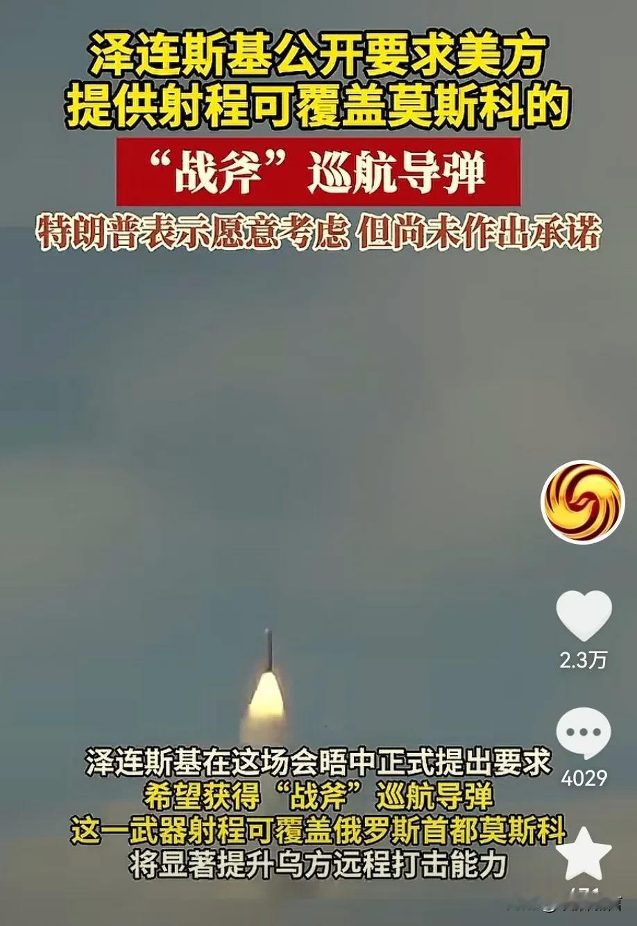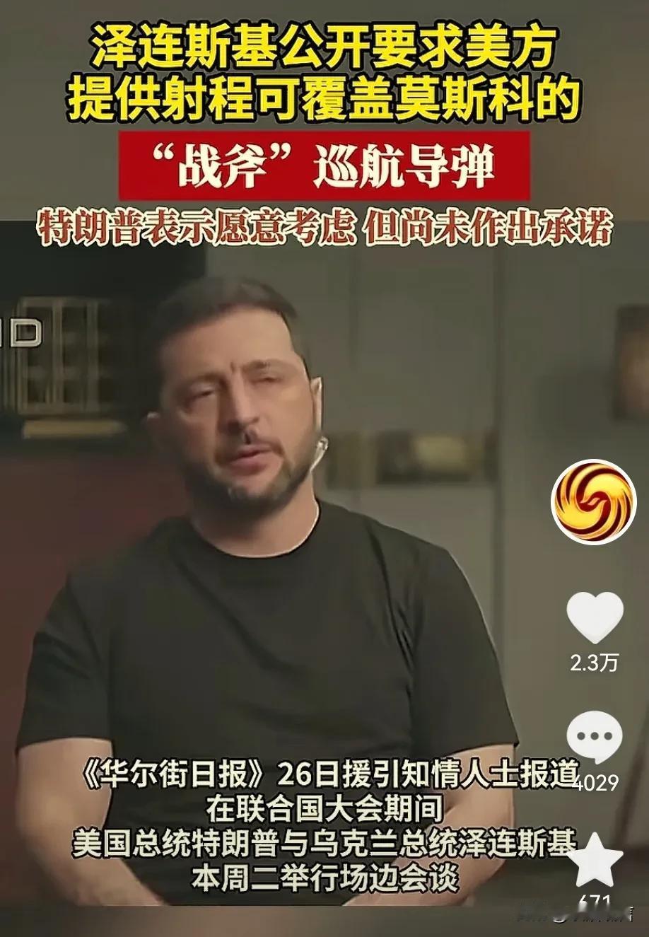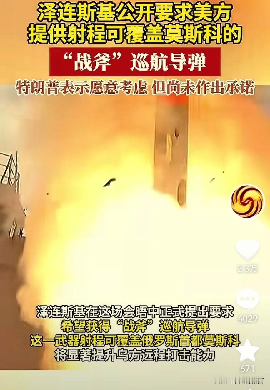 泽连斯基想对俄罗斯下死手了,现在希望美国提供“战斧”巡航导弹,目前特朗普还没有答