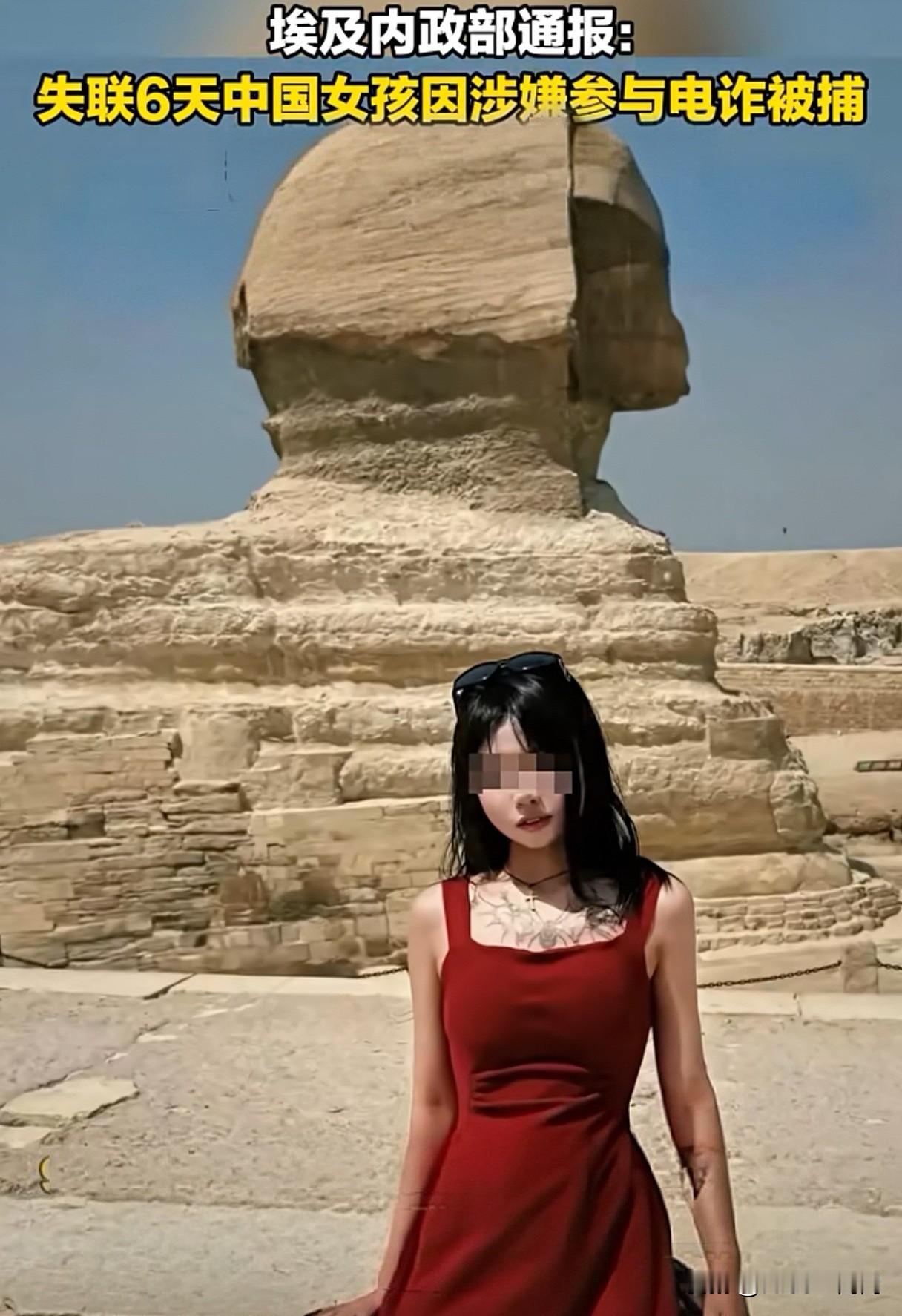 反转了!9月30日凌晨,埃及内政部最新通报:失联6天21岁的中国女孩因涉嫌参与电诈被捕 ,警方在其团伙定居点发现枪支、白刃武器、电击枪等。 此前9月27日,在埃及失联的21岁中国女孩池女士被找到的消息冲上热搜。没想到反转来得这么快却有点尴尬! 据女孩的母亲说,女儿对埃及文化和金字塔向往已久,大学毕业后因未找到心仪工作,赴埃及一方面圆梦打卡,一方面想在当地考察。 对此网友怎么看?网友表示:好消息是人找到了,坏消息是警察逮起来的。还有细心的网友发现并点评:这个纹身很社会了! 现在看来,21岁还是大学毕业,该女生的人生轨迹确实有点跑偏了,电诈背后都是无数个倒霉的家庭,我们上大学接受高等教育不应该让思想滑坡,否则对不起社会,更对不起父母! 很遗憾,女孩才21岁人生就有了抹不去的污点!但每个人的人生路都是自己选择的!此前很多善良的人替女孩的失联而担忧,以为是好人遭遇不测,谁知道原来是坏人被逮,还让全世界都知道吃瓜围观,你看看这事儿整得实在有点尴尬不好评价啊……