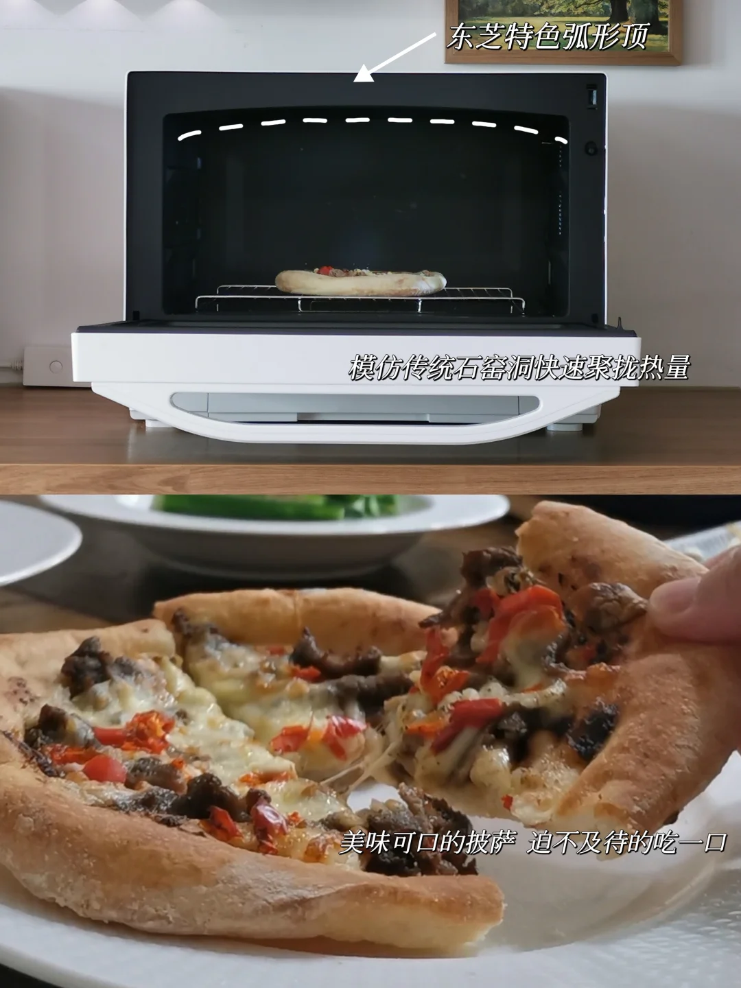 ✨再用这个250℃石窑烤烤个的披萨,内腔顶部曲面+四周圆角的设计更利于聚热,上色也更均匀,烤出来的饼皮外脆里软,芝士还能拉出长丝,比外卖还好吃。