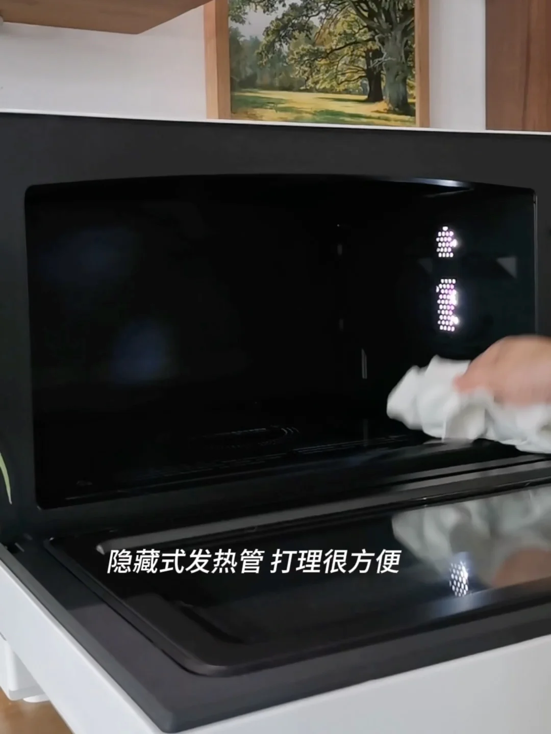更让我惊喜的是清洁超省事,里面是全隐藏烤管,做完饭用湿抹布一擦就干净,不用抠那些难清理的缝隙。连以前总说“家电麻烦”的家属,现在都爱用它的自动菜单炖排骨汤,不用盯着火候,出锅时肉烂汤鲜,还总念叨“这机子比老锅好用多了”。
