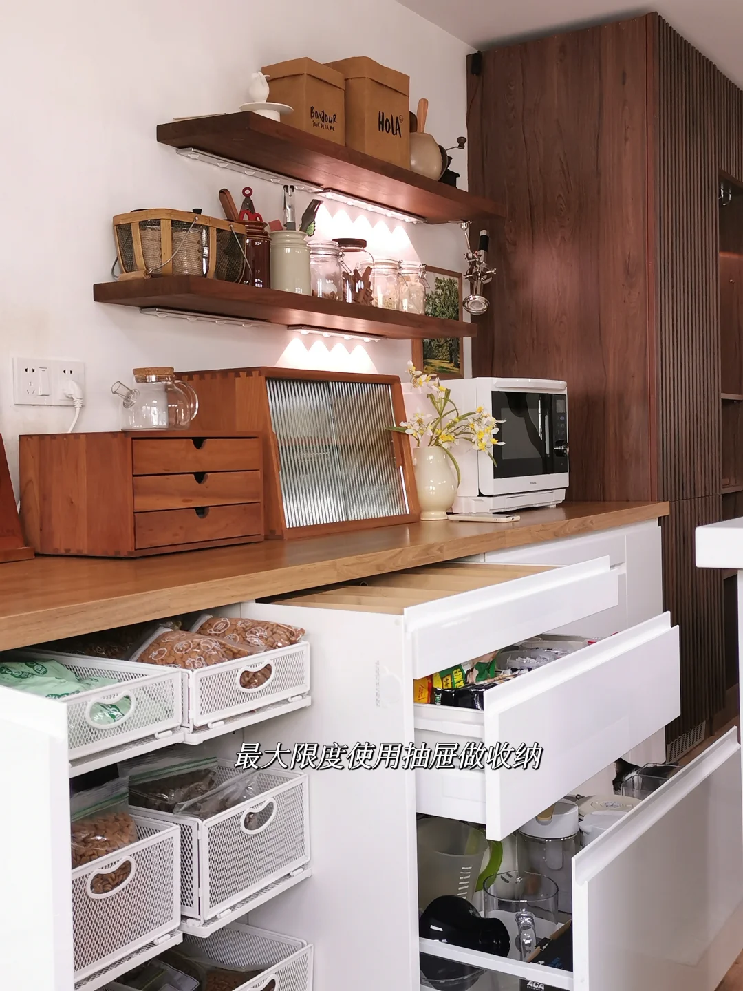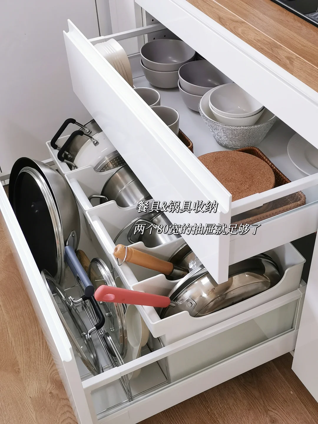 不再乱买收纳品,也不盲目囤货,东西按类别归置好,不用追求整齐好看,只要站在橱柜前能一眼找到,就够了;