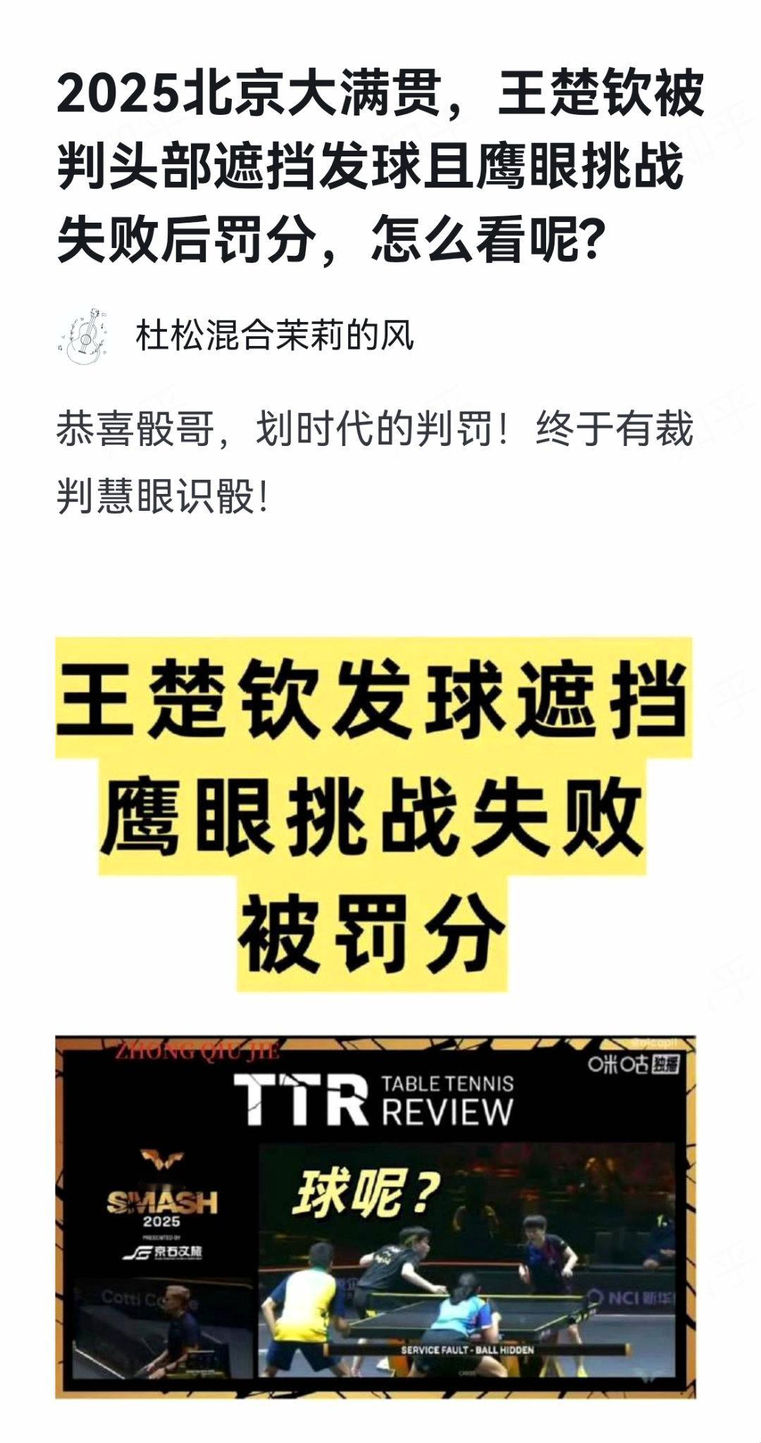 如何看待2025北京大满贯实锤王楚钦头部遮挡发球且鹰眼挑战失败后被判罚分?
