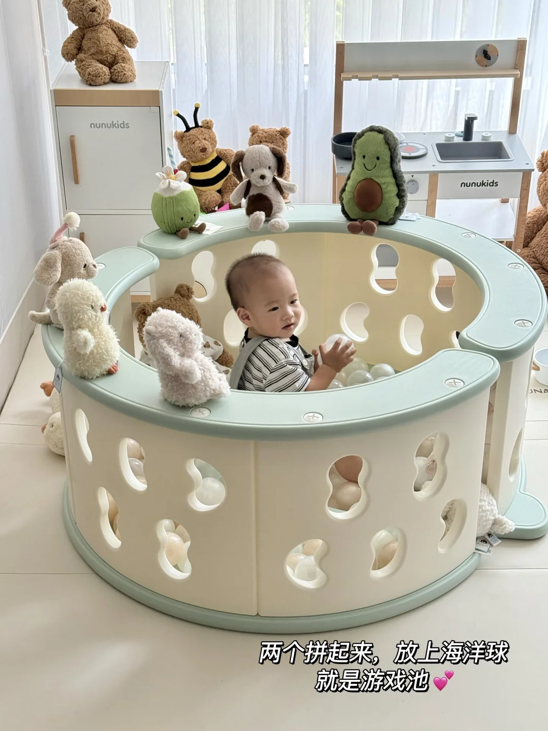 两个围起来,放上海洋球,就是游戏围栏