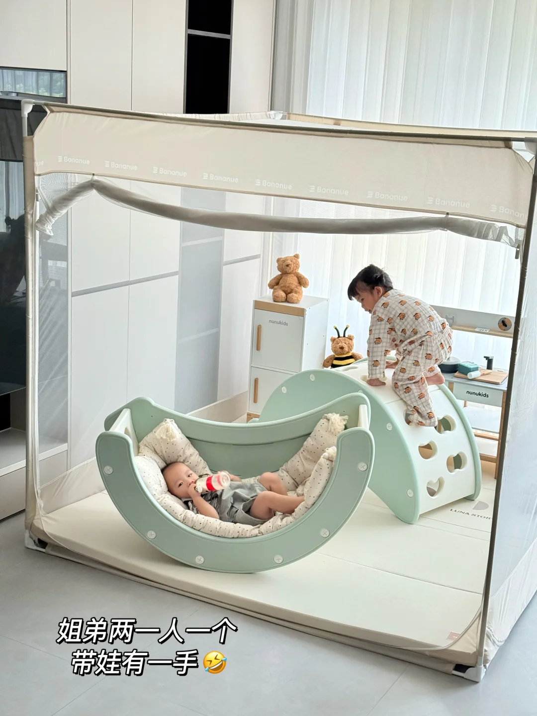 两姐弟,一人一个,现在全靠它帮我带娃🤣