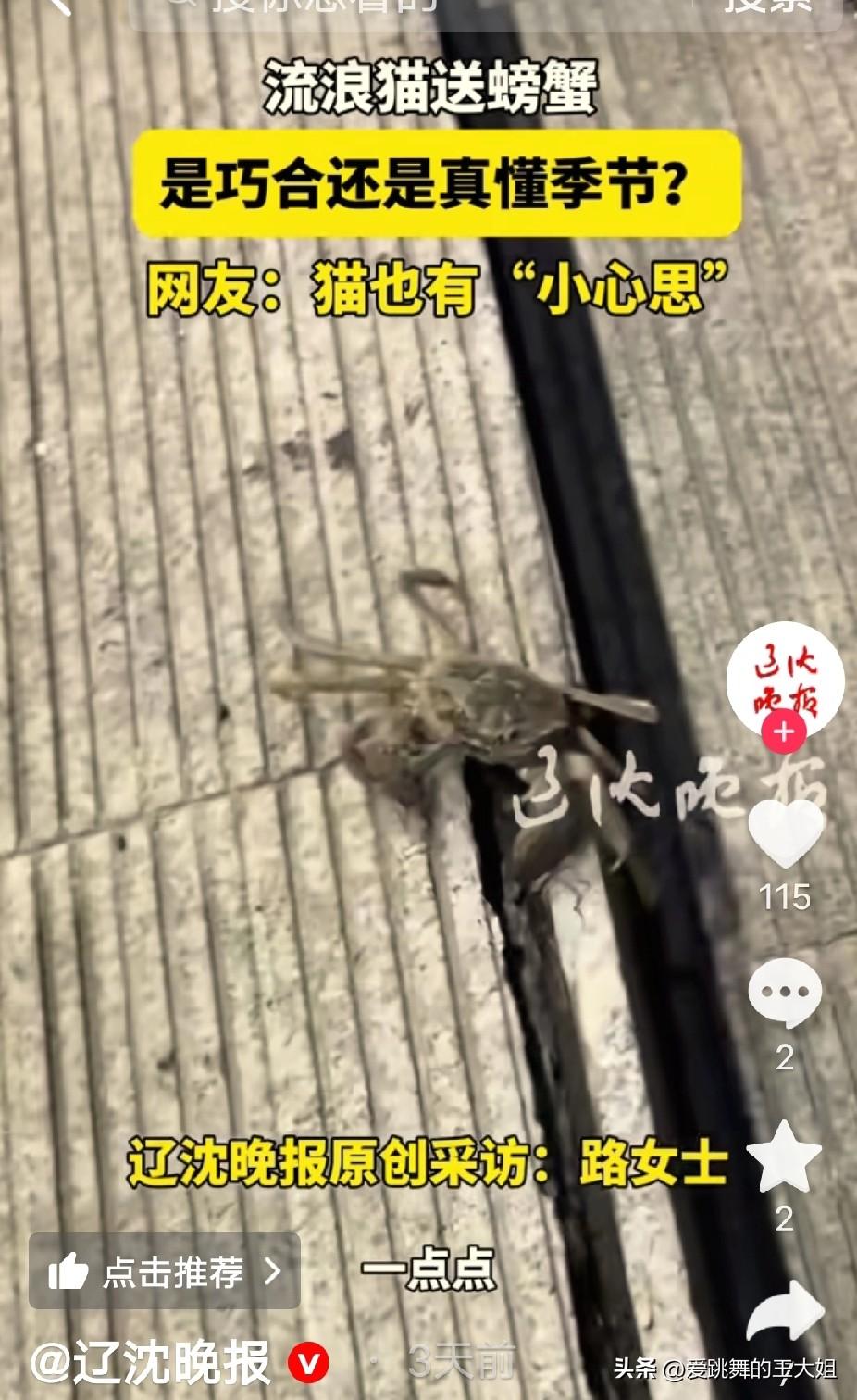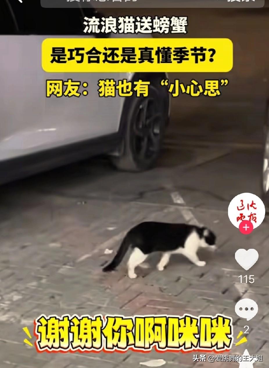万物皆有灵性!辽宁,饭店老板娘最近一直在投喂一只流浪猫,这不深夜突然送来“谢礼”!老远就看到小猫咪赶着一只小螃蟹往饭店来,它可能是不敢叼走,就是一点点的赶着螃蟹走。不得不说这猫咪真懂人情世故,不白喂。网友:猫也有“小心思”! 这只流浪猫赶着螃蟹横穿马路的画面确实有趣,它用爪子小心翼翼推着螃蟹前进的样子,像极了孩子捧着易碎礼物给妈妈献宝。猫咪选择不直接叼起猎物或许有它的考量——可能之前送过死老鼠被人类嫌弃,这次换个活物展示捕猎技能。动物行为学家分析过,猫把活猎物带给人类有时是母性本能延续,母猫会通过递送活物教幼崽捕食,这或许说明猫咪把投喂者当成了需要照顾的“家庭成员”。 辽宁这位老板娘的经历让人想起杭州施女士的类似遭遇。那只叫“点点”的流浪猫在一年投喂期内,陆续送来泥鳅、麻雀甚至仓鼠当礼物,每次发现窗台上的“惊喜”都让施女士既感动又头皮发麻。猫咪的送礼清单其实暴露了它们的认知逻辑:在猫的世界观里,人类不会捕猎等于生存能力差,于是将自己最珍贵的战利品分享给这个“笨拙的两脚兽”。 不过这类温馨故事背后藏着法律风险。有律师提醒长期投喂流浪猫可能构成事实饲养关系,若猫咪伤人投喂者需承担赔偿责任。浙江就发生过流浪猫抓伤邻居导致投喂者赔偿医疗费的案例,这种潜在责任让爱心行为变得沉重。更现实的问题是,投喂点聚集流浪猫可能扰邻,野猫发情期的嚎叫、打斗常引发社区矛盾。 流浪猫的报恩行为还折射出城市生态的隐忧。它们捕捉的麻雀、仓鼠多是城市野生动物,频繁捕猎可能破坏局部生态平衡。澳大利亚有研究显示每只户外猫平均每年捕杀186只动物,这也是国外很多社区禁止投喂流浪动物的重要依据。当然国内动物保护组织更主张TNR(捕捉-绝育-放归)模式,既控制种群数量又保障动物福利。 猫咪的“小心思”或许没人类想象得复杂。动物心理学家认为猫的报恩更多是条件反射——投喂带来食物正向强化了送礼行为。但不可否认,这种跨越物种的互动温暖了无数都市人的心灵。就像辽宁老板娘看到螃蟹时噗嗤一笑的瞬间,人与动物的情感连接早已超越理性计较。 各位读者你们怎么看?欢迎在评论区讨论。