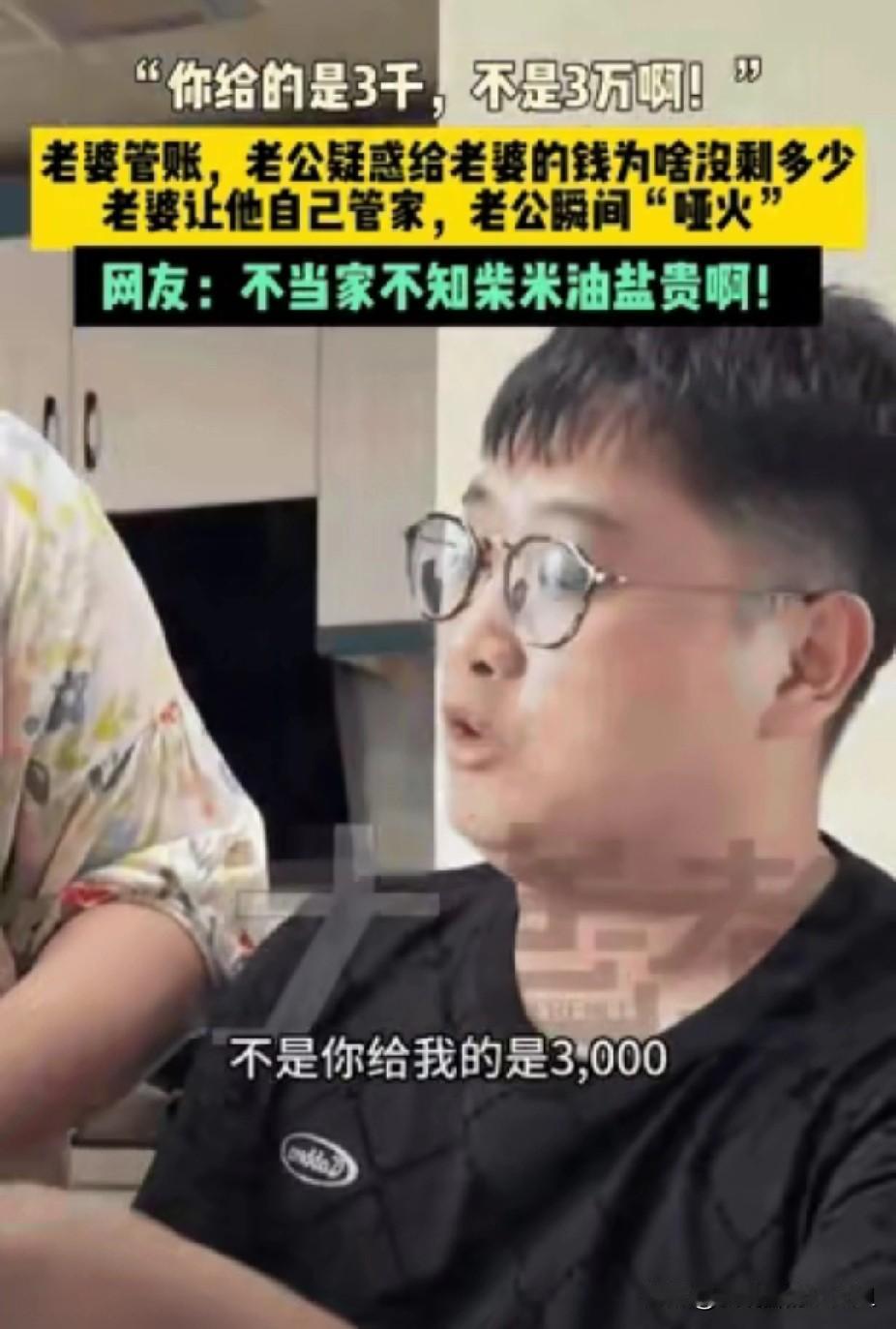 男子嫌妻子每月开销大,突然妻子拿了3000块钱给他。妻子跟他说: “下个月的菜,你来买。”男子拿着钱数了数,妻子却在一旁边交代,她说: “记得买点牛羊肉,买点虾。还有水费、电费、煤气费、物业费别忘了交,另外房贷别忘了还。” 男人捏着那三张薄薄的钞票,感觉比烙铁还烫手。他张了张嘴,那句“就这么点?”硬是卡在喉咙里没出来。他心想,三千块?光房贷就去掉快一半了,这日子怎么过?可看着妻子平静无波的脸,他只能闷闷地“嗯”了一声。 第一天当家,男人特意提早下班去了菜场。他盘算着买点便宜的蔬菜,肉嘛,少买点就行。可一到菜场他就傻眼了,排骨四十多一斤,活虾更贵,孩子们正长身体,妻子特意交代要买牛羊肉和虾,他咬咬牙还是称了些。接着又是水果牛奶,随便一买一百多就没了。他拎着轻飘飘的塑料袋,心里直发沉。 这还没完,物业费单子塞在门缝里,三百多;电费燃气费加起来又是好几百。他拿着计算器按来按去,眉头越皱越紧。房贷还款日就在眼前,那可是一笔大数目。他这才猛然想起妻子之前总念叨“钱不经花”,当时他还觉得是她不会规划。 半个月不到,三千块已经见底。男人开始感到前所未有的压力,每天下班就往家赶,一头扎进柴米油盐里。他发现小儿子非要吃那种贵的进口酸奶,大女儿的学习资料隔三差五就要买新的。这些零零碎碎的开支,以前他从不放在眼里,现在却像小刀子一样,一刀一刀削着他的底气。 妻子倒是不闻不问,每天照常上下班,回家就陪孩子写作业。男人硬着头皮问朋友借了点钱,才勉强撑到月底。他第一次尝到了“当家人”的滋味,原来握着钱袋子的人,手心都得捏把汗。 交完最后一笔费用那天晚上,男人主动坐到妻子身边。他声音低低的:“那个……钱不够用。”妻子没抬头,只是轻轻“哦”了一声。男人憋红了脸,终于把心里话倒了出来:“我以前总觉得你花钱大手大脚,现在才知道……这个家太难撑了。” 妻子这才放下手里的书,心平气和地打开手机记账软件。她一笔一笔划给他看:孩子奶粉尿布、补习班费用、人情往来、日常用品……数字密密麻麻,像蚂蚁一样爬满了屏幕。她指着其中一项:“你上次说一天一百伙食费够用,那是五年前的物价了。现在娃长身体要吃肉,你妈高血压要买特定油,这些钱省不下来。” 男人盯着那些数字,突然想起自己上次请客吃饭就花了五百多。他以为给家里那点钱绰绰有余,却没想过妻子贴进去了多少自己的工资。这个看似平静的家,原来一直是妻子在默默托着底。 这场“角色互换”像一面镜子,照出了婚姻里最真实的褶皱。太多夫妻为钱吵架,吵的其实不是钱本身,而是那份被忽略的付出感。男人嫌女人乱花钱的时候,往往没算过自己给了家里多少;女人委屈巴巴贴钱时,也忘了让另一半看清生活的全貌。 好的婚姻从来不是谁养谁,而是两个人共同撑起一个家。算不清的账不如摊开来算,放不下的面子不如换成体贴。夫妻之间最怕的,就是一个觉得理所当然,另一个憋着不说。 各位读者你们怎么看?欢迎在评论区讨论。