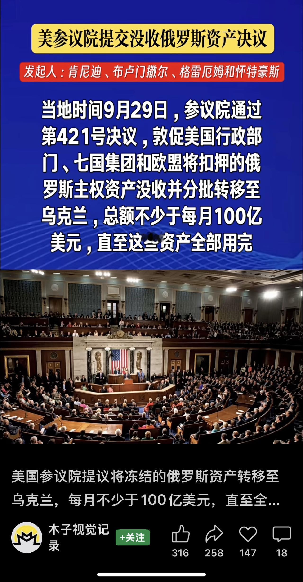 美国和英国立场更为激进,主张直接没收俄罗斯被冻结资产的本金,并将其用于援助乌克兰。 而欧盟态度较为谨慎,主要担忧可能冲击国际金融规则,因此倾向于将这部分资产所产生的利息收益用于援乌。 2024年4月21日,美国众议院以压倒性多数通过一项法案,内容包括授权没收俄罗斯资产、禁止解冻俄方主权资产,以及允许使用被扣押资产支持乌克兰重建与赔偿等事项。