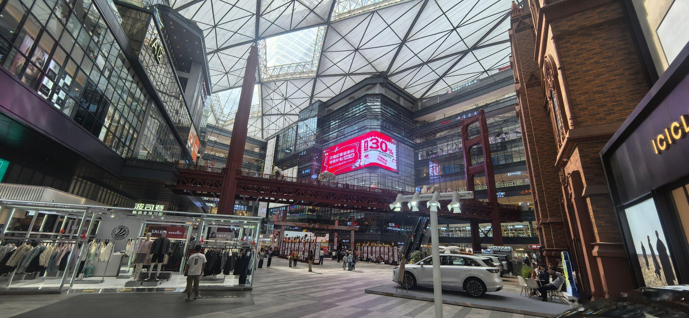 在昆明海乐世界商场中庭的“洛杉矶大桥”和“索菲亚大教堂”之间,聚集大量新能源快闪