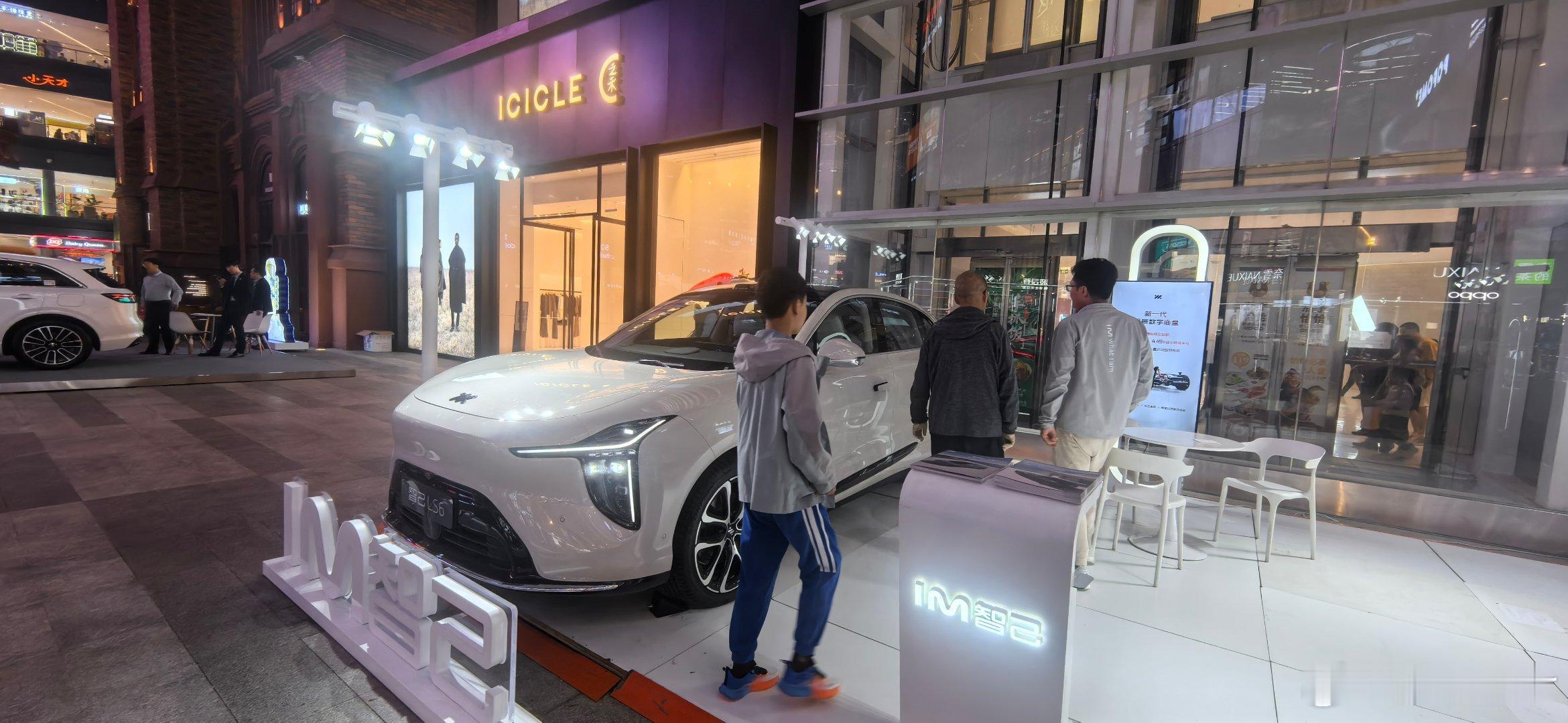 在昆明海乐世界商场中庭的“洛杉矶大桥”和“索菲亚大教堂”之间,聚集大量新能源快闪店,智己,尚界,方程豹,岚图,特斯拉,魏派…
