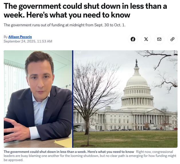 10月2日,据美国福克斯新闻网等媒体报道,当地时间9月30日,美国众议院未能通过
