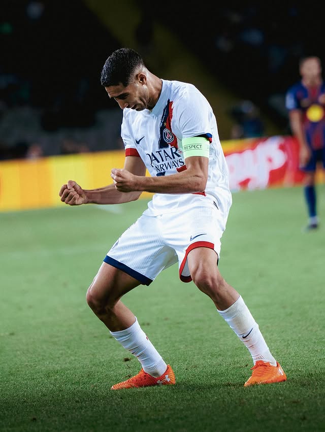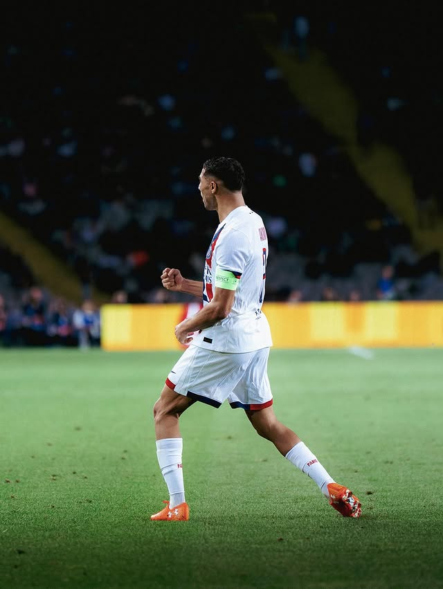 赛后,阿什拉夫社媒晒赛场图集庆祝胜利:欧冠之夜。