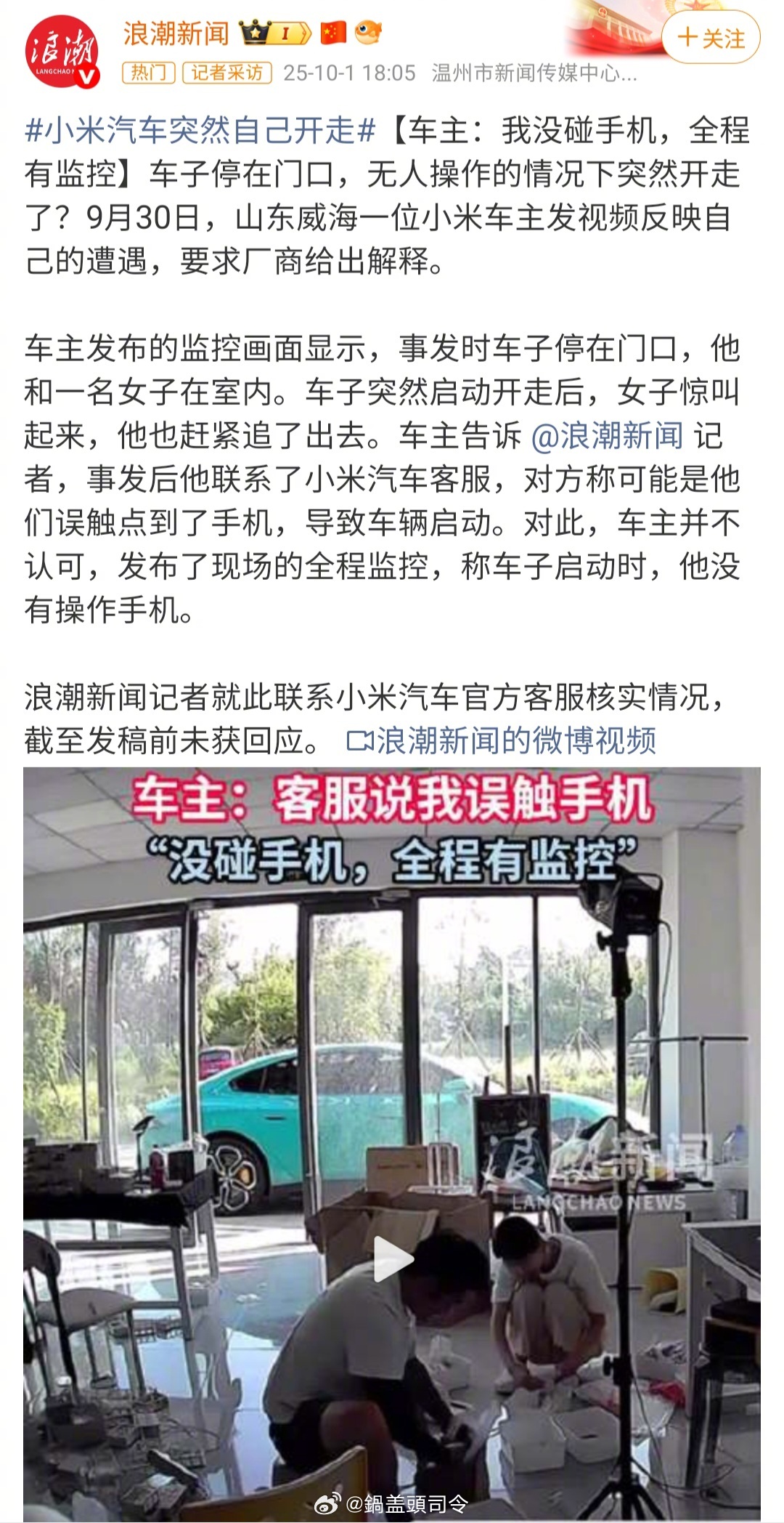 昨晚我也刷到这个#小米汽车突然自己开走#的信息了,当时还有点疑虑没敢转。这个情况