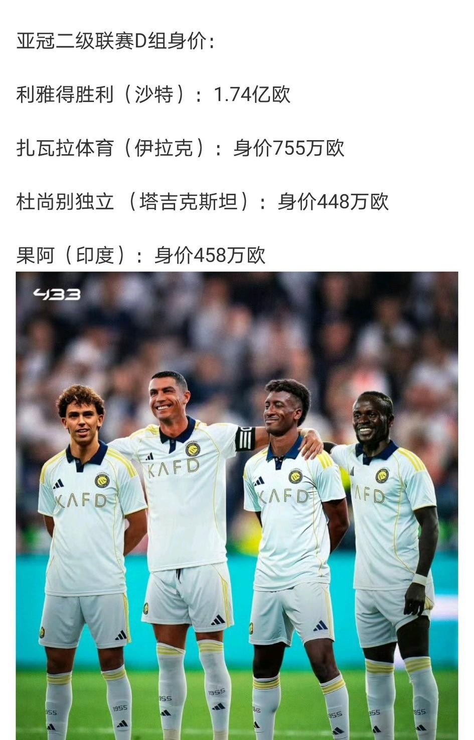 C罗真的不爱虐菜了!他没有前往伊拉克参加亚冠2的比赛,利雅得胜利2-0轻松击败扎瓦拉。 罗老板给自己定了踢亚冠2规则:客场全不去,主场只要临着联赛的周中也不会踢,基本只会淘汰赛才出战了。 扎瓦拉身价仅仅是狗胜的1/22,上赛季夺得伊拉联亚军。但球队本赛季开局不利,前2轮伊拉联中,球队遭遇两连平,目前仅积2分排名伊拉联第16位。