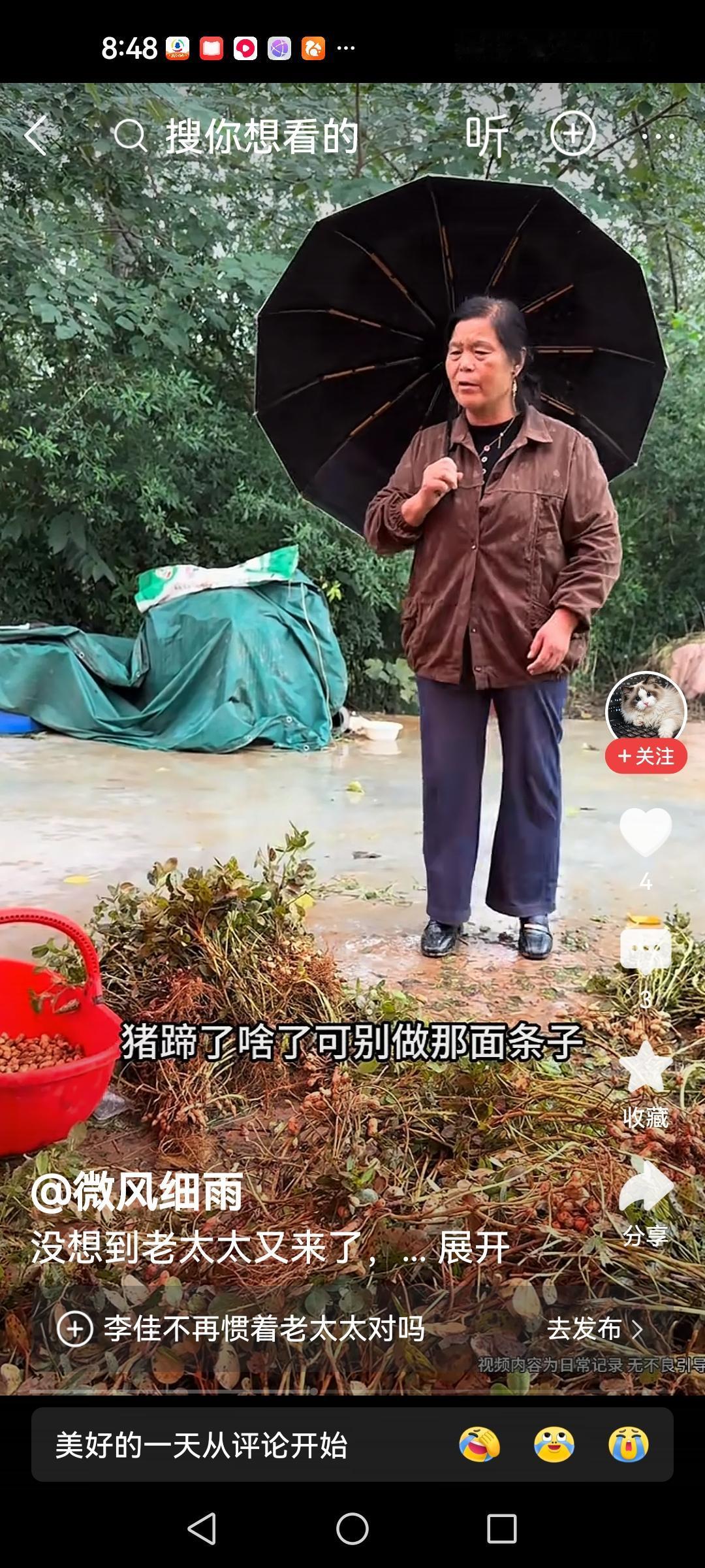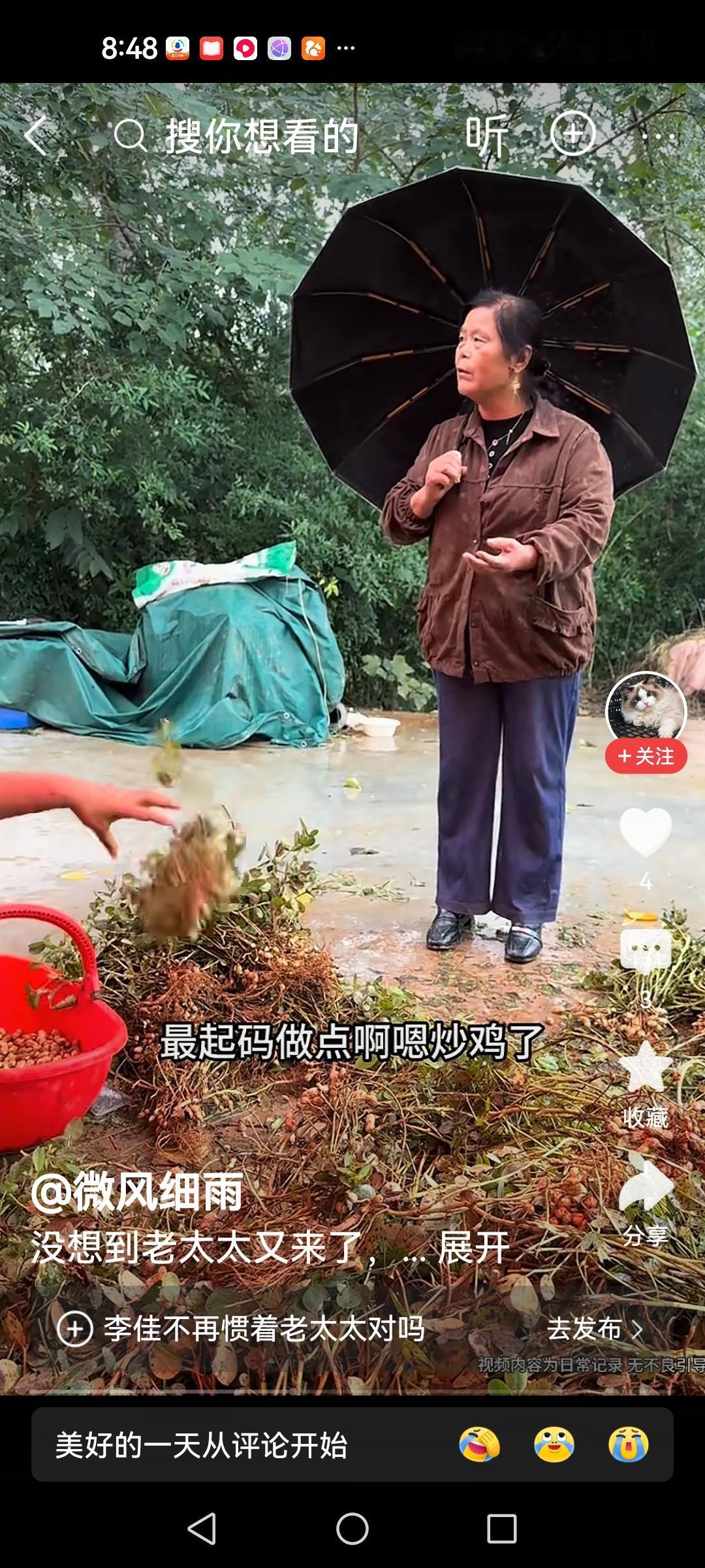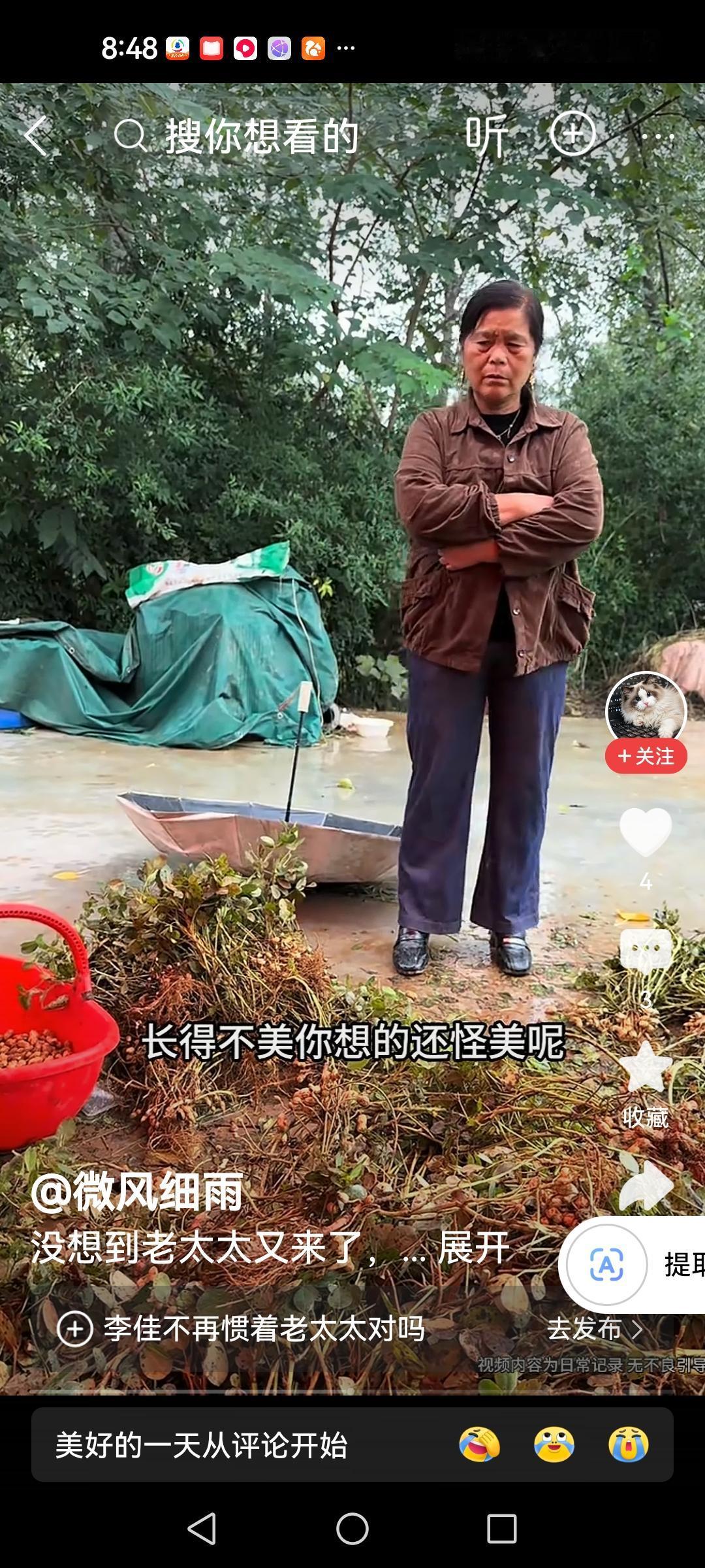李佳终于怼老壳子了 老壳子看见李佳在家里摘花生,风凉话不够说的,还是俺孩好,离不开俺孩,这回回来呀,每天给我做四五个菜,炒鸡呀,猪蹄子呀,…不看看自己什么德性,配不配让李佳侍候? 李佳怒怼老壳子,长得不美,想得怪美。 这个我自己盖的房子,想回就回。 怼的好,告诉老壳子,以后别搭理我,我看见你恶心。 老壳子碰一脸灰,说,这次从娘家回来说话变厉害了。 李佳说人善被人欺,马善被人骑,不能改变别人,那就改变自己。 不能再让自己受委屈了。