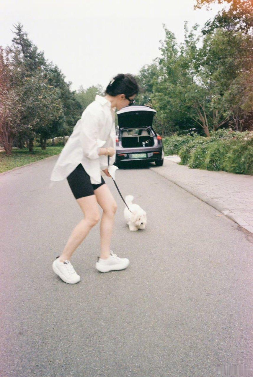 刘亦菲晒新狗刘亦菲营业照来了,出现新的狗狗啦!刘亦菲连体紧身衣身材