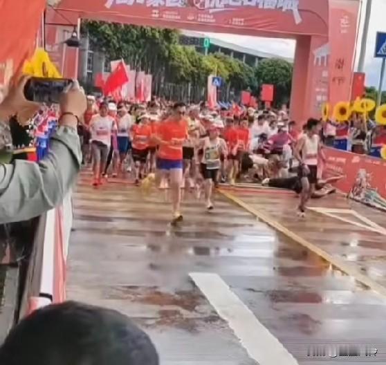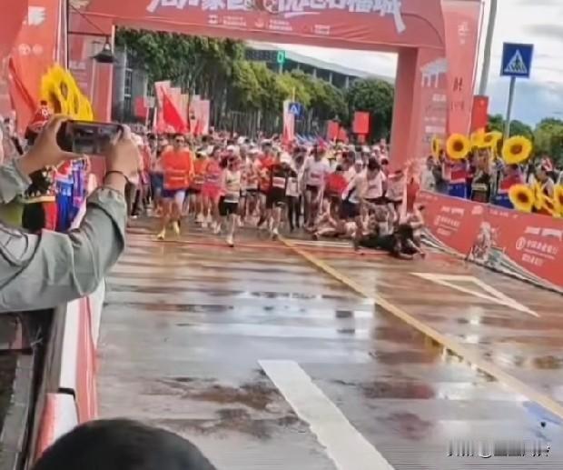 最烂没有之一,这主办方没经验吗?这个问题已经出现很多次了,包括冲刺的时候横幅 为什么这个环节老是出错?,要么就是冲的时候拦脖子。跑步的一人一脚把跑过去拦路那人踩死了会负责吗?这个主要是裁判的责任,裁判没经验,不专业,起跑带至少要在开跑前1-3分钟撤掉。发明像纸巾一样 一节节的横幅很困难吗?正规比赛的横幅,中间是磁扣,人群冲开横幅后,收到两边。 黑色衣服牵彩带的工作人员被彩带 带过去,然后绊倒了选手。现在很多活动图便宜,找一些生活都不能自理的女大学生当志愿者。到底是名次重要,还是人命要紧,踩踏事故每年都有