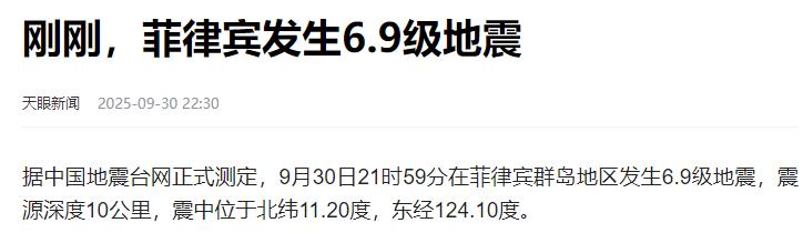 9月30日,菲律宾爆发地震,美日澳网友期望中方救援! 当天晚上21时59分,菲