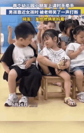 福建,幼儿园老师上课时,正在给小朋友录像,突然一小男孩主动牵旁边女孩的手,女孩先是愣了一下,盯着男孩看他要干嘛?男孩却慢慢靠近女孩的脸,就在这时,被老师笑了一声打断,男孩气得不行! 麻烦各位读者点一下右上角的“关注”,留下您的精彩评论与大家一同探讨,感谢您的强烈支持! 福建一所幼儿园的一段 15 秒短视频里两个孩子课堂上的自然互动引起关注。 镜头中,一个小男孩忽然伸出手,轻轻牵住了身旁女孩的手。女孩被这突然的动作愣了一下,没有立刻抽回手,反而微微歪头,眼神里满是 “他要做什么” 的好奇。 男孩没说话,小脸上带着孩子气的认真,慢慢往女孩身边挪了挪,似乎想和这个合眼缘的小伙伴更亲近一点。 就在这时,镜头外的老师被这份毫无杂质的互动逗笑,轻轻的笑声打破了此刻的安静。 男孩瞬间停下动作,转过头看向老师,小眉头轻轻皱起,小嘴微微撅着,那副 “计划被打断” 的小模样,又让老师忍不住笑了起来,手机镜头也跟着晃了几下。 这段视频传到网上后,评论区涌动着理性与温暖。有家长留言:“自家孩子也会牵好朋友的手分享绘本,这就是孩子表达喜欢的方式,哪有什么复杂心思?” 一位教育从业者写道:“幼儿对‘喜欢’的表达,从来都是本能的,想和你靠近,就牵你的手;觉得你可爱,就想多看看你。 这种不加掩饰的善意,比任何社交课都珍贵。” 还有网友感慨:“刷到这个视频时,正好在赶方案,瞬间觉得心里松了口气。原来最简单的互动,就能治愈成年人的疲惫。” 其实,这段视频本质上是因为它戳中了我们对 “纯粹” 的向往。 男孩的牵手不是 “主动出击”,只是 “我想和你做朋友”;女孩的不躲不是 “顺从”,只是 “我不排斥你”;老师的笑不是 “打断”,只是 “被你的认真打动”。 可真正的成长,不该是在成人的偏见里小心翼翼,而是有人允许他们笨拙地表达喜欢,自在地传递善意。 在快节奏的生活里,它提醒我们,守护童真从来不是一句口号,而是放下成人的尺子,不把复杂的标签贴在孩子身上。 毕竟,那些孩子的善意瞬间,才是孩子成长中最珍贵的礼物,也是治愈我们疲惫生活的良药。 那么你们怎么看待这件事呢?欢迎在评论区说说你们的看法吧! 信源:黄河新闻网2025-9-29——幼儿园小朋友上课时手牵手,男孩靠近女孩时,被老师笑了一声打断