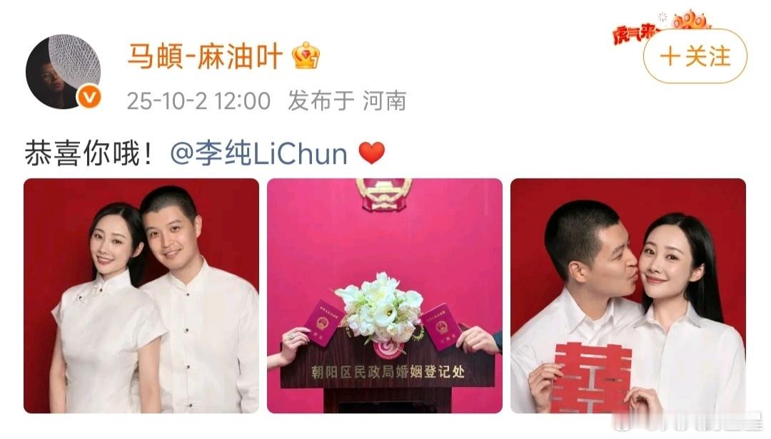 李纯马頔领证李纯马頔领证结婚