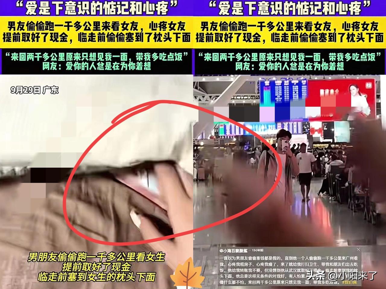 广州,女生和男友温存后,依依不舍送别男友,回家后竟然枕头下看到一沓现金,她瞬间就