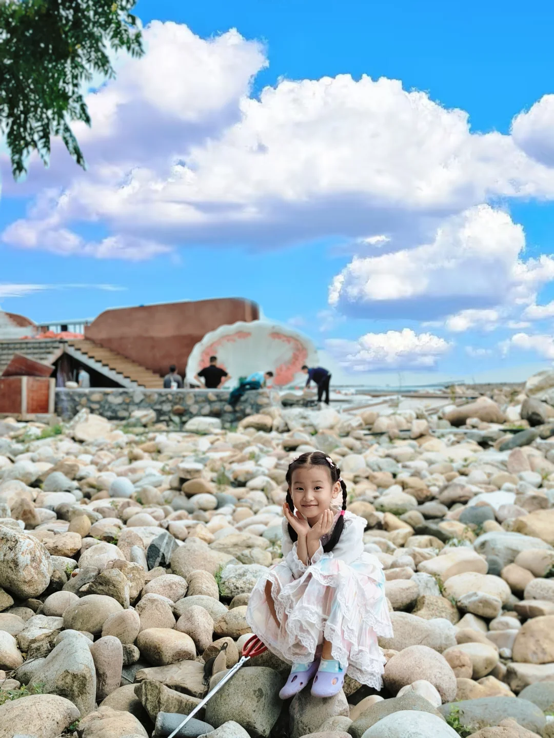 海边彩色石头拍照📸好看极了,小丸子发现了一个敲大的贝壳房子,难道真的是相柳救小夭的地方嘛?🤣