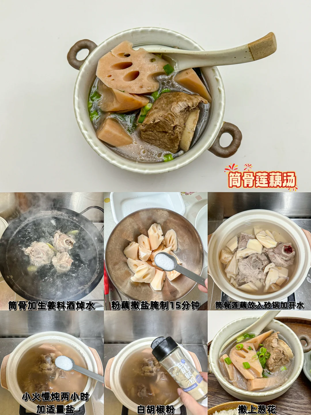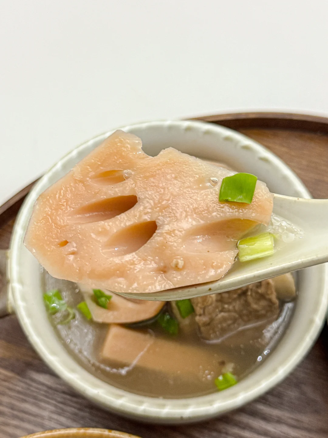 3️⃣ 加盐、白胡椒粉,撒葱花~汤白藕糯超治愈