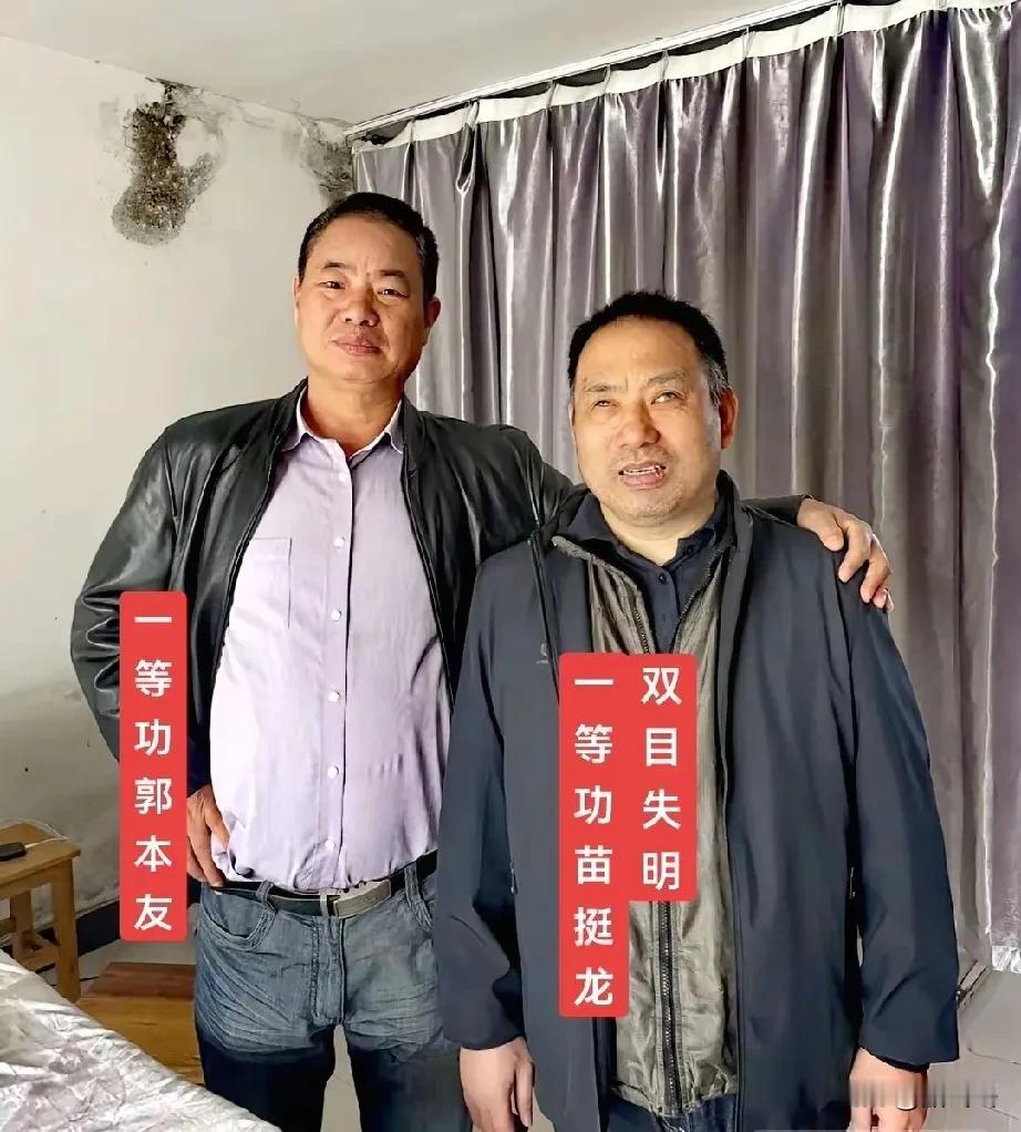 向英雄致敬! 一等功臣郭本友和一等功臣苗挺龙的珍贵合影留念 苗挺龙1983年入伍,1985年赴老山前线作战。在1985年6月10日战役中,战友陆彩宾不幸牺牲。后来苗挺龙在保卫“6号哨位”时被炸瞎双眼。即便自己需要照顾,回家后他就提出去探望陆彩宾的爹娘,只因战场上的约定。向英雄致敬