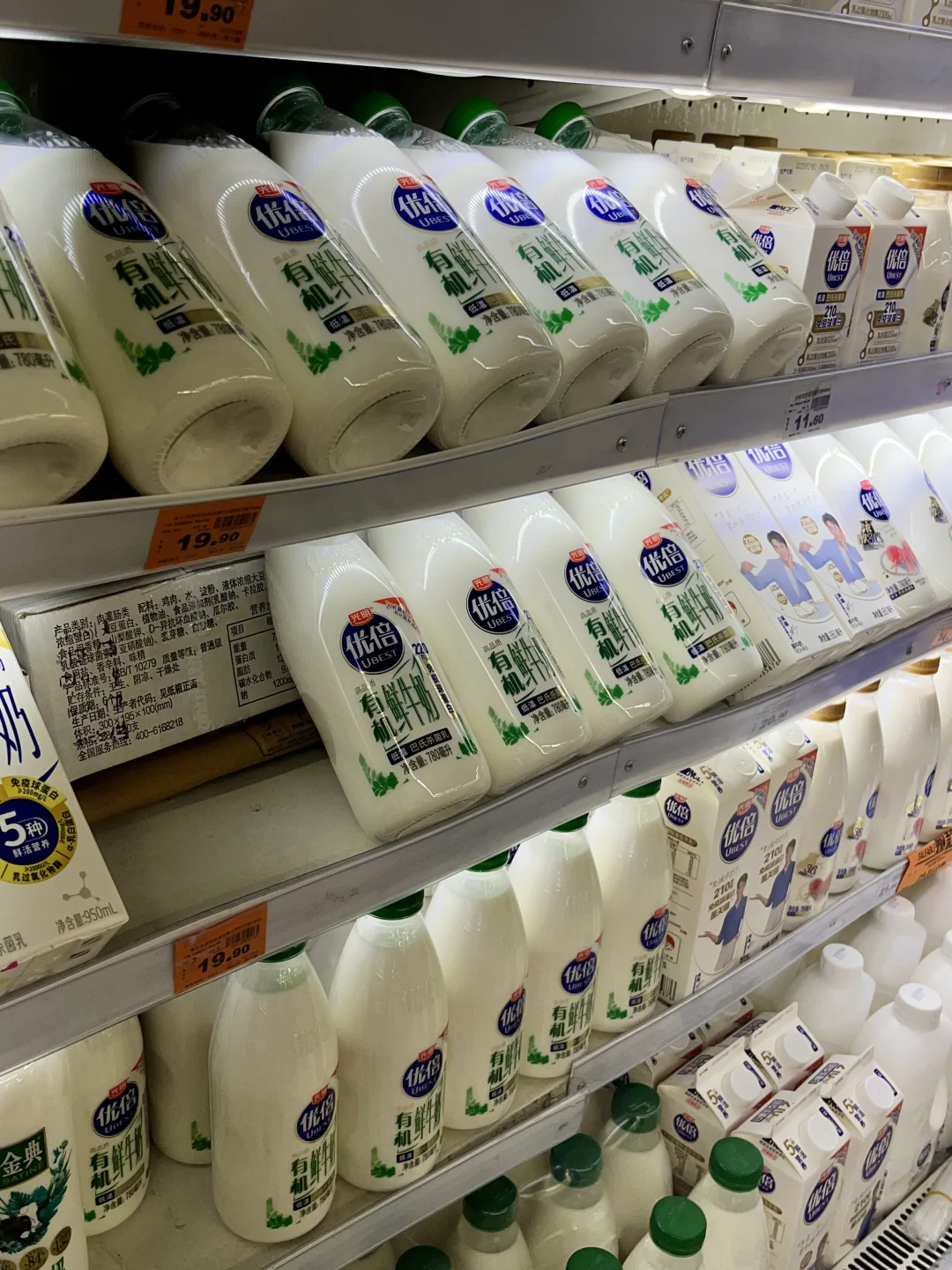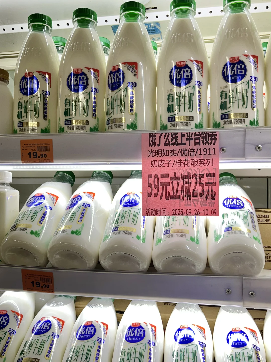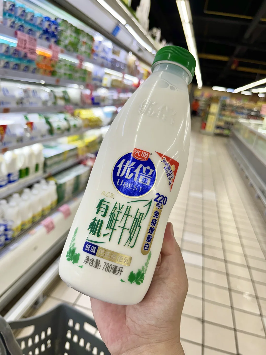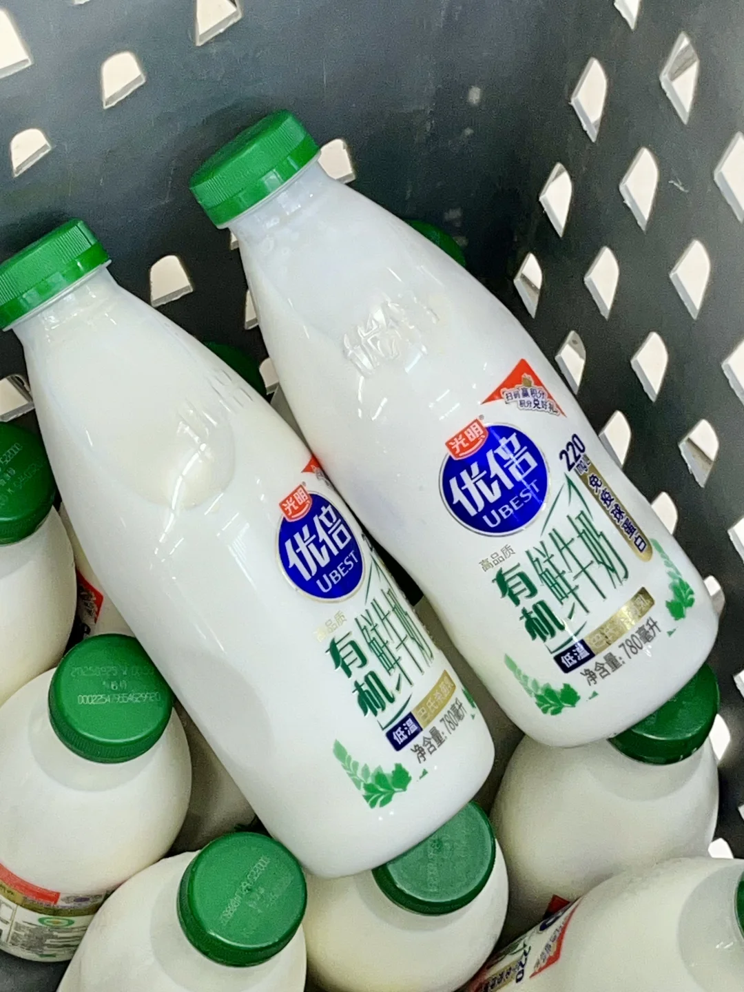 国庆宅家不想断粮,逛超市第一站就冲鲜奶区!看到常喝的光明优倍有机鲜牛奶,直接拎了八大桶——毕竟全家的日常保护力,全靠它补。