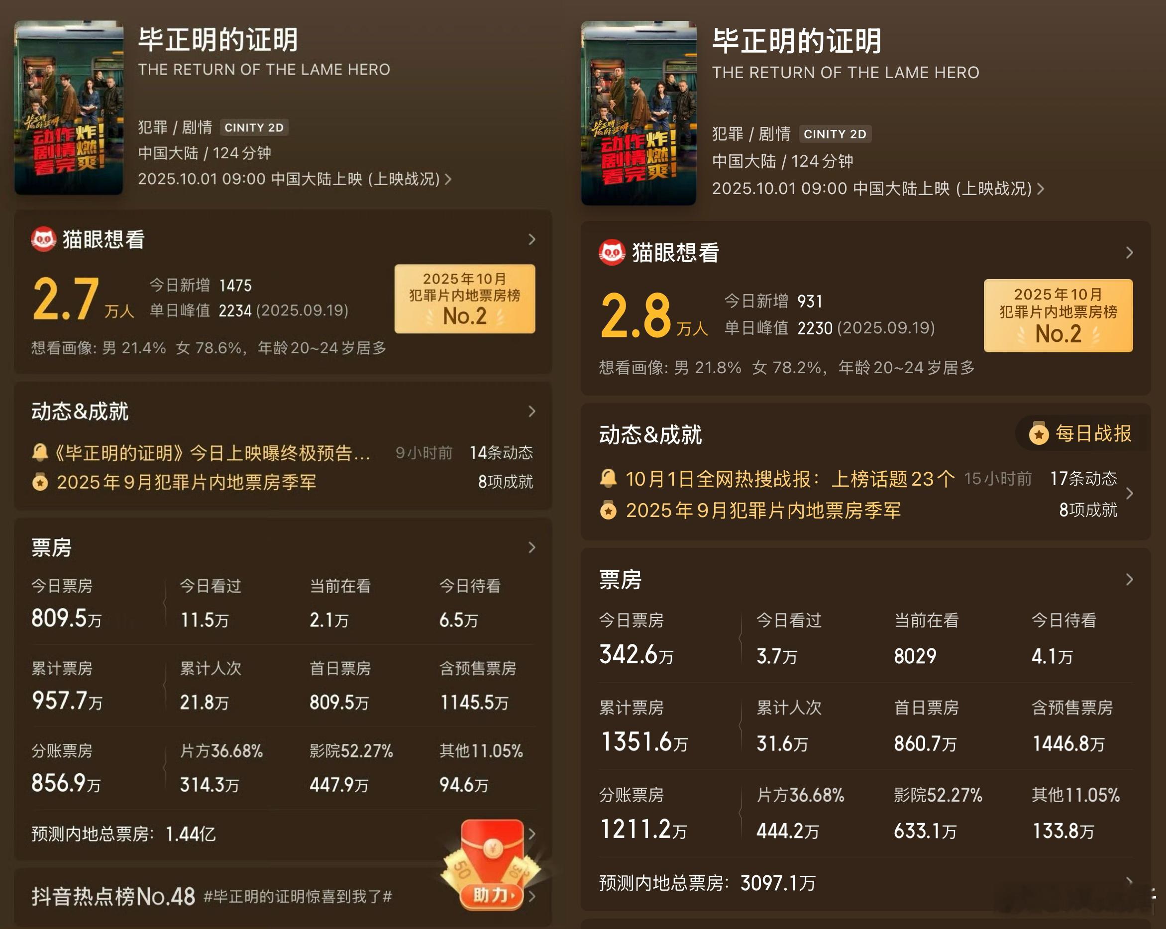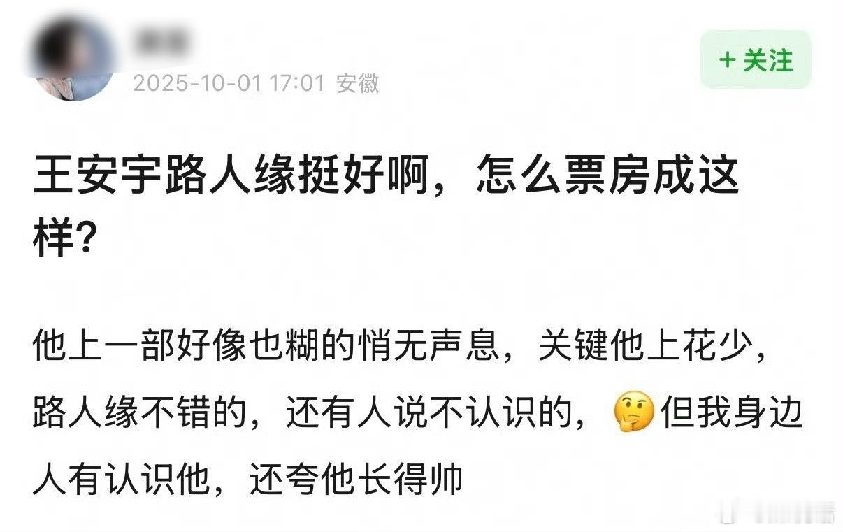 网友问:王安宇路人缘挺好的,为什么新电影票房扑了?[疑问]《毕正明的证明》上映两天票房1350万,预测总票房从1.4亿跌到3000万,今日票房342万,甚至只有檀健次《震耳欲聋》点映的四分之一