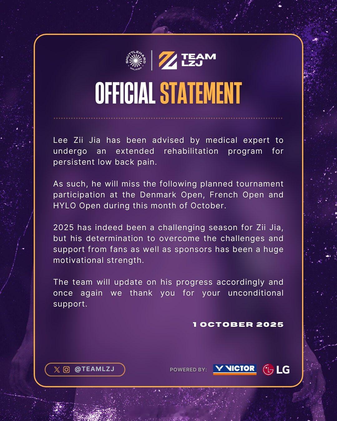 李梓嘉退出本月所有比赛(丹麦公开赛,法国公开赛,海露公开赛)。