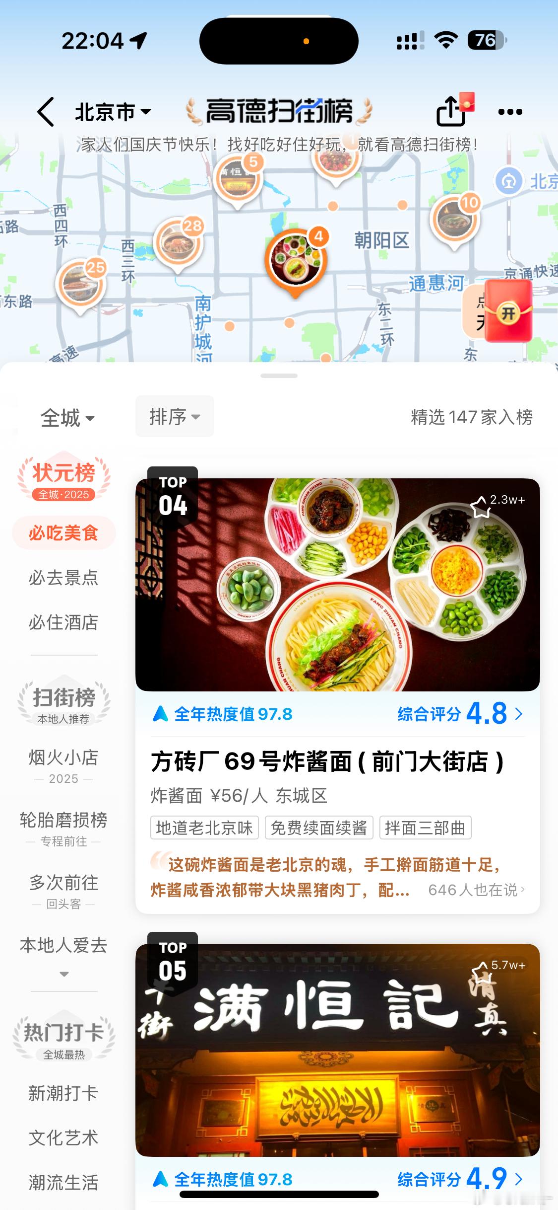 高德领进门胖几斤看个人跟着榜单去扫街国庆逛北京真的不用愁吃什么!这次全靠高德扫街榜解锁地道美味,从胡同老店到隐藏小馆,踩雷不存在的[打call]