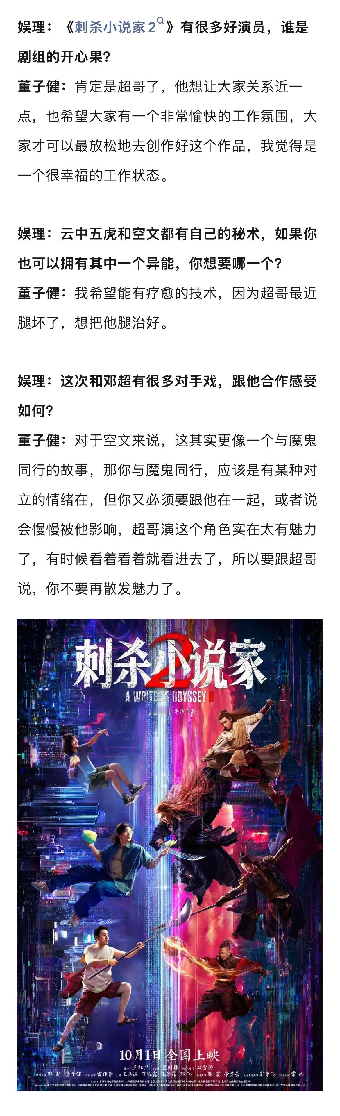 谈及需要喊饰演行者的丁程鑫为“五叔”,董子健笑称这都是角色赋予的,他也想问问行者“平时咋保养的,花期很长。”据董子健都透露,虽然和丁程鑫每天都在一起打打闹闹,但并没有什么身材上的“卷”,“ 我们暂时还不是那么肤浅的人哈哈。”而让他比较“妒忌”的则是,“因为他可能练舞蹈,他记招会比我快很多,柔韧性又好这么多,动作又很漂亮…”娱理独家↓