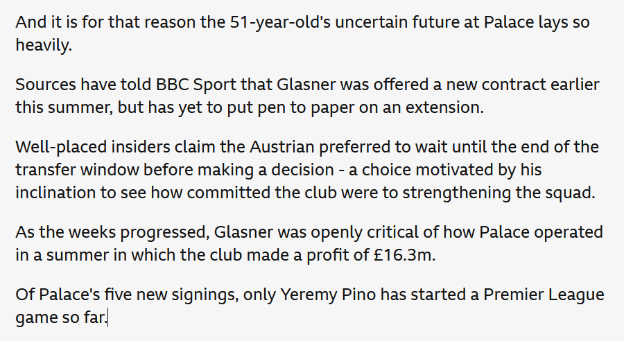 BBC伦敦记者Sami Mokbel:接近水晶宫的消息人士称,格拉斯纳留下的可能性微乎其微