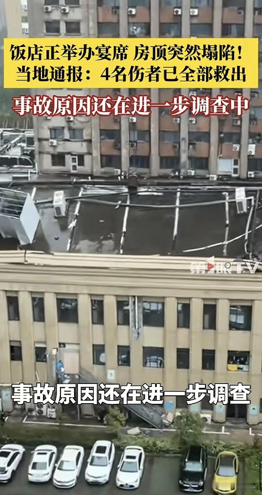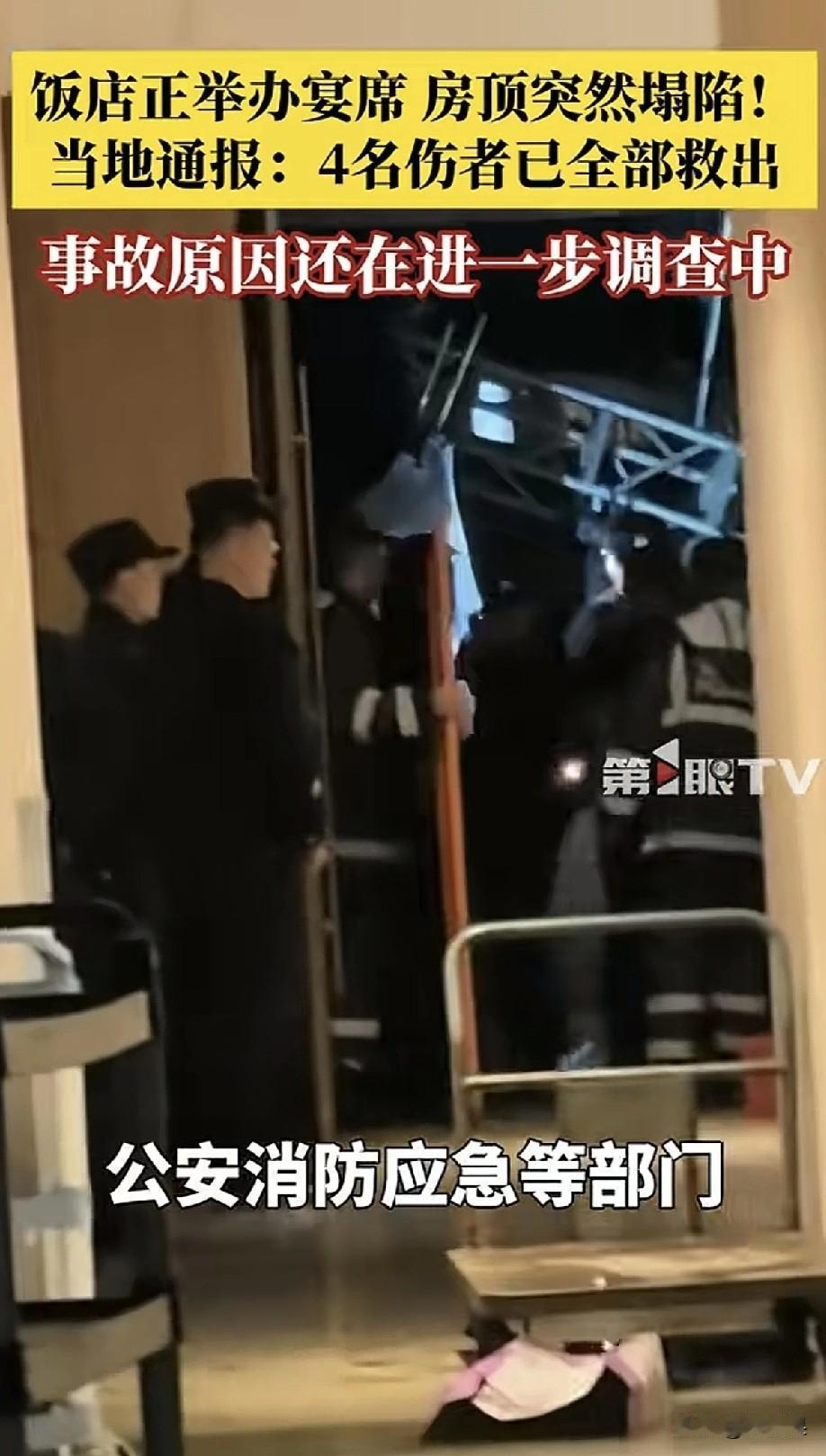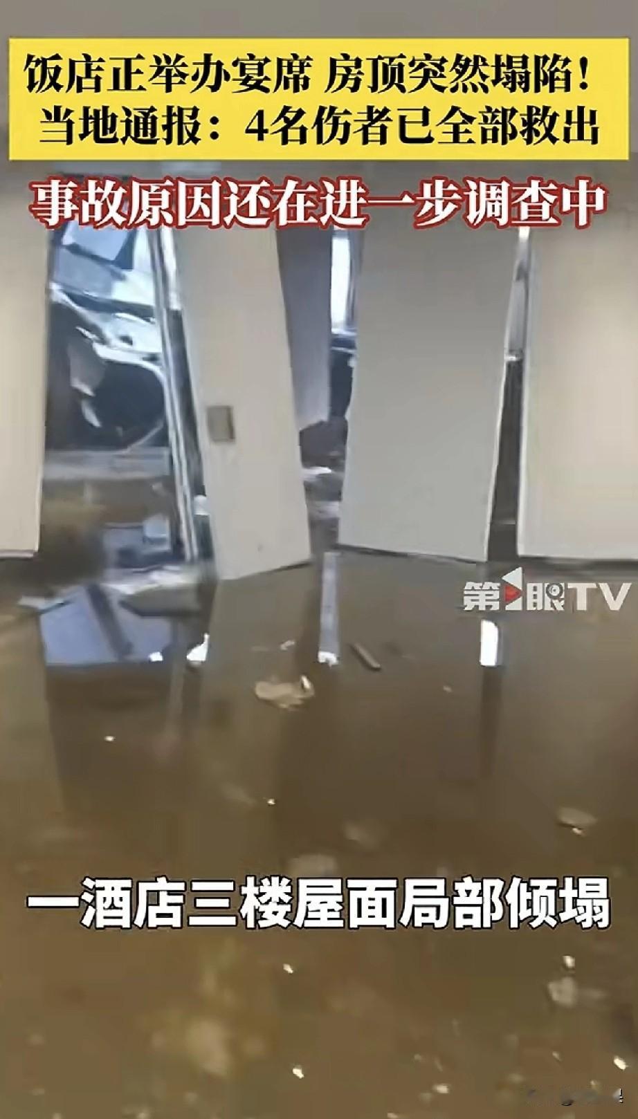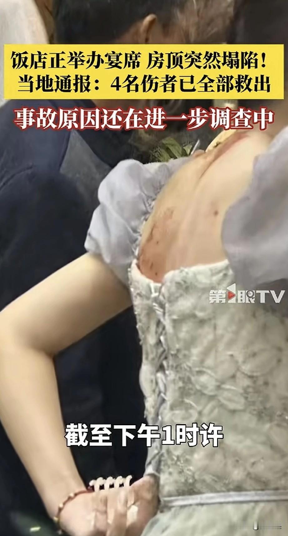 太可怕了, 正办婚礼呢,结果所在的酒店塌了, 婚礼怎么办?参加婚礼的人怎么样了? 这起发生在江苏东海县一个大酒店的事, 让大家揪心。 10月2日,国庆假期,高高兴兴,风风光光地结婚吧,结果办婚宴的酒店塌了。 事故发生在上午11点多,听说有好几场婚礼,有的客人刚到,有的正在举行仪式, 是三楼的楼顶塌陷了,影响到了在三楼办婚宴的客人,所幸,只有4名伤者。 具体原因正在查,有人猜测是酒店违章改建所致, 有的酒店建筑为了增加业务,本来二层楼,就在上面另接一层,楼顶估计盖得不结实。 酒店肯定要承担责任,至于如何赔偿客人,双方得谈。 就是这婚礼怎么办?是改天再办,还是就此别过? 给客人尤其是新郎新娘造成的心理阴影,恐怕这辈子都会存在。