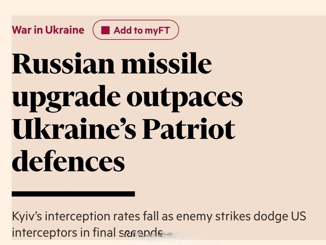 英国《金融时报》称,在俄罗斯完成弹道导弹的末端变轨技术升级后,九月份乌军“爱国者