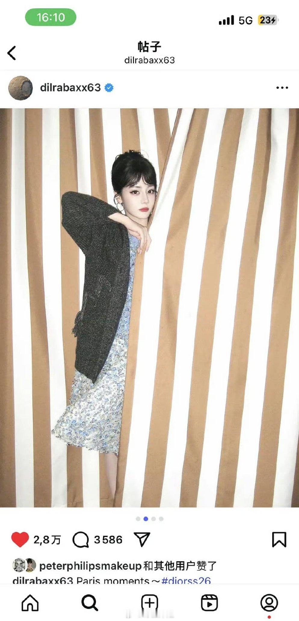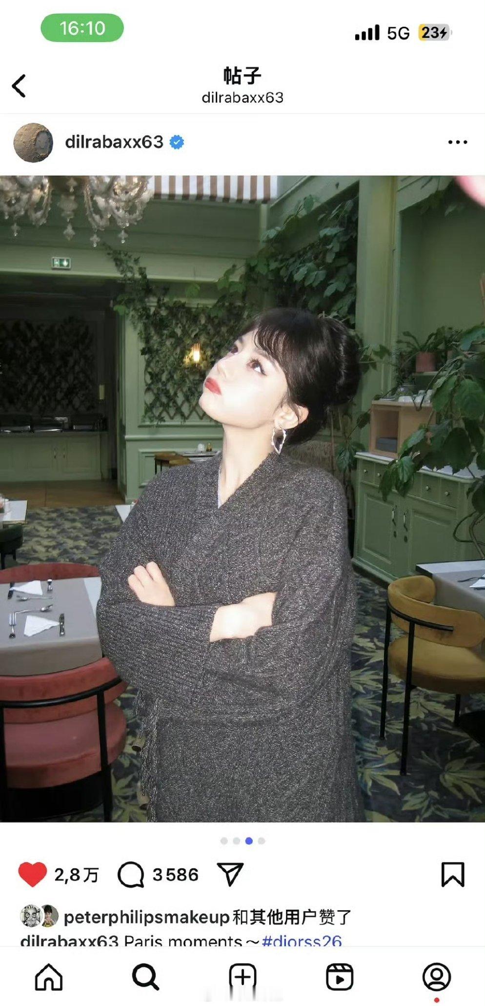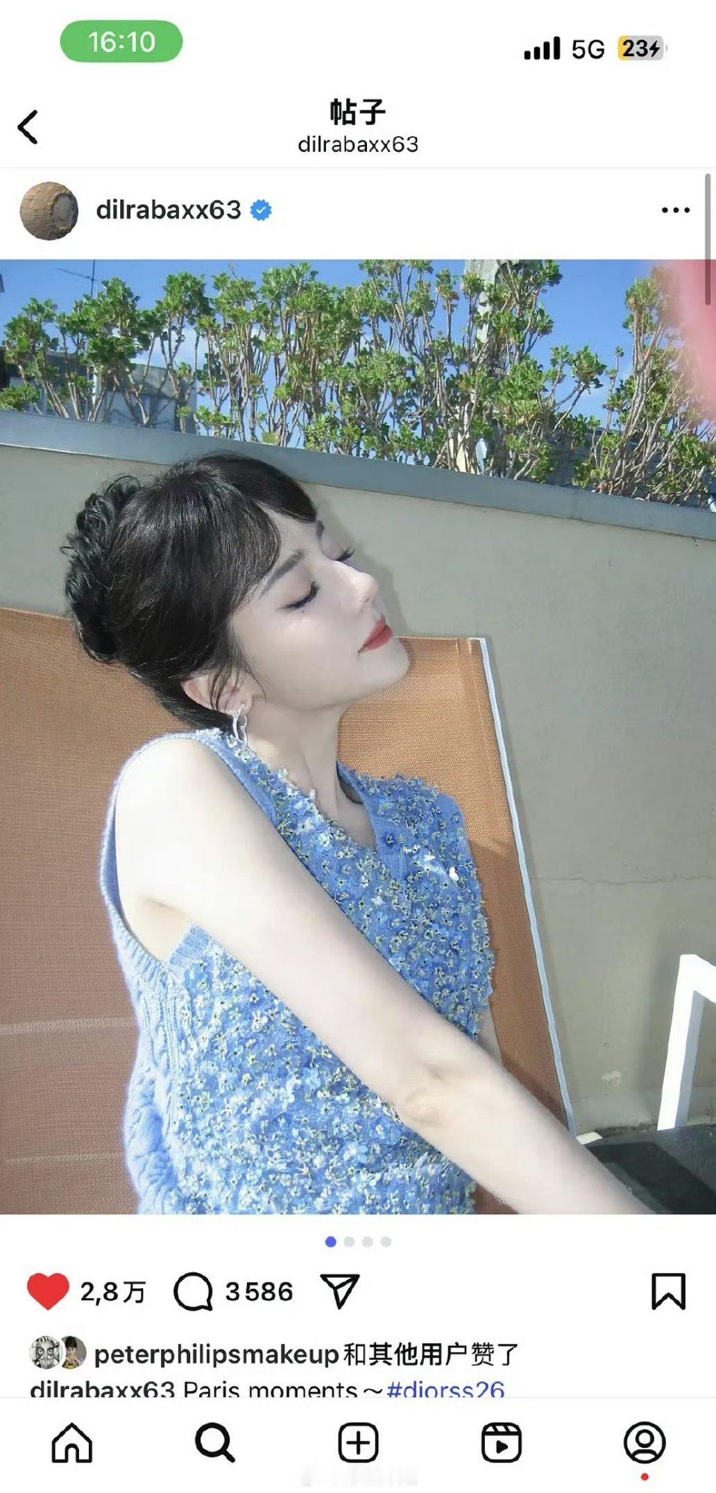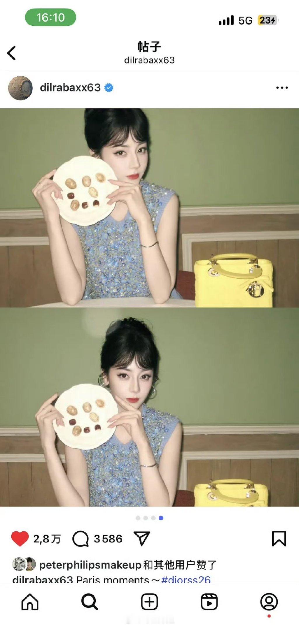 迪丽热巴更新自己的ins啦,是时装周的妆造啊,冰雪奇缘小公主的即视感,嘴巴嘟嘟的,可盐可甜的迪丽热巴,你爱了不?