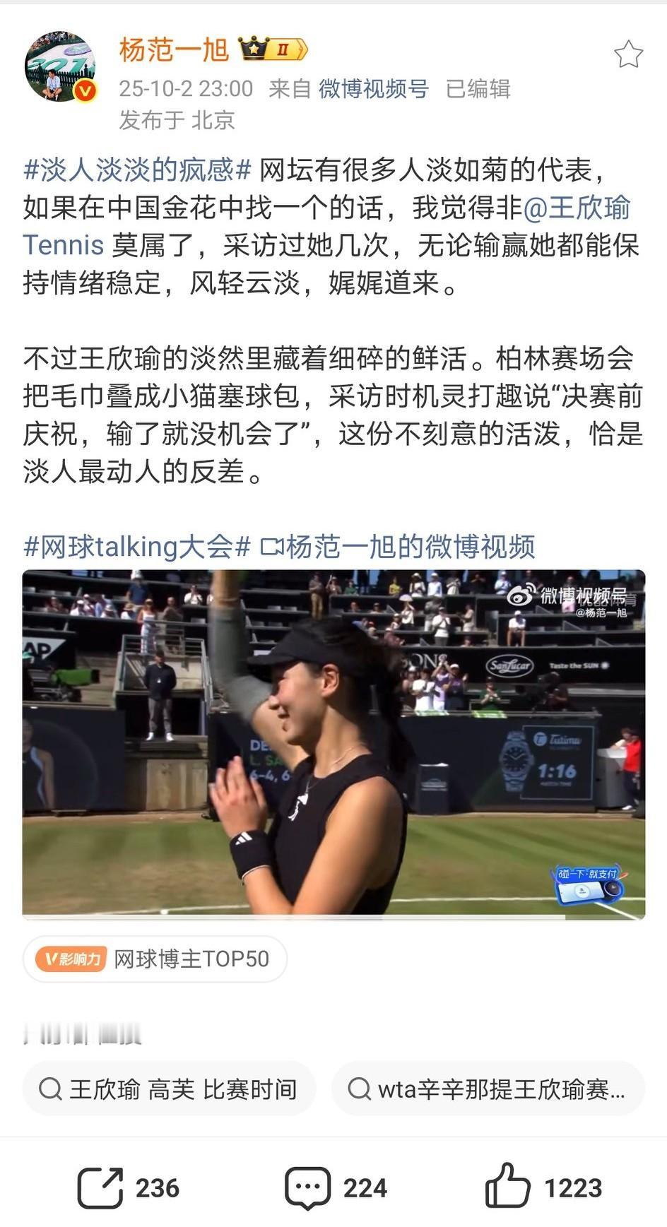 这帖子貌似商业味很重……中国金花里王欣瑜的天赋不比郑钦文差,但成绩怎么都打不上来