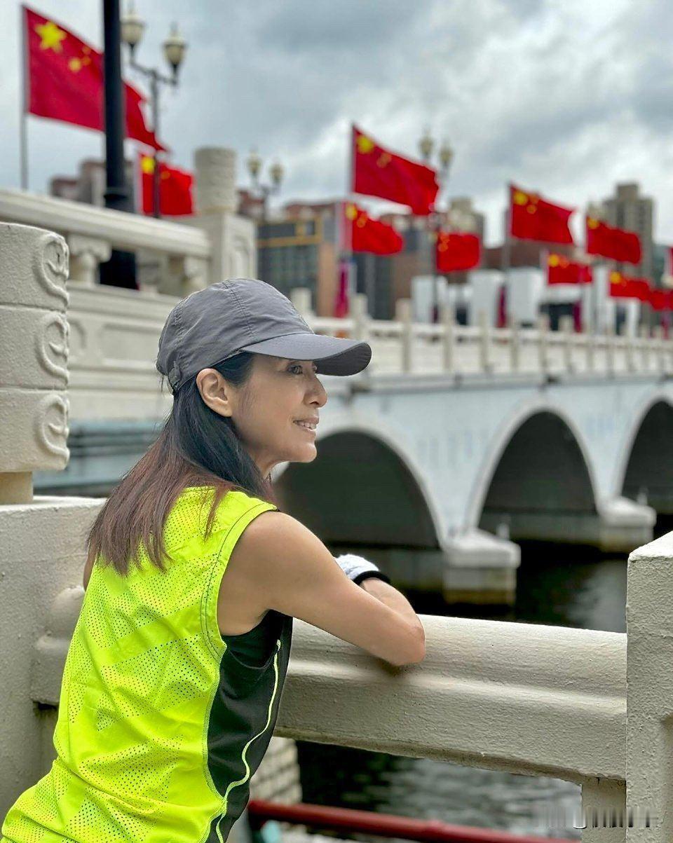 70岁米雪在香港跑步时和五星红旗合影,她看起来好瘦,整个人好干枯,但精神状态挺好的,神采奕奕![赞][赞][玫瑰]