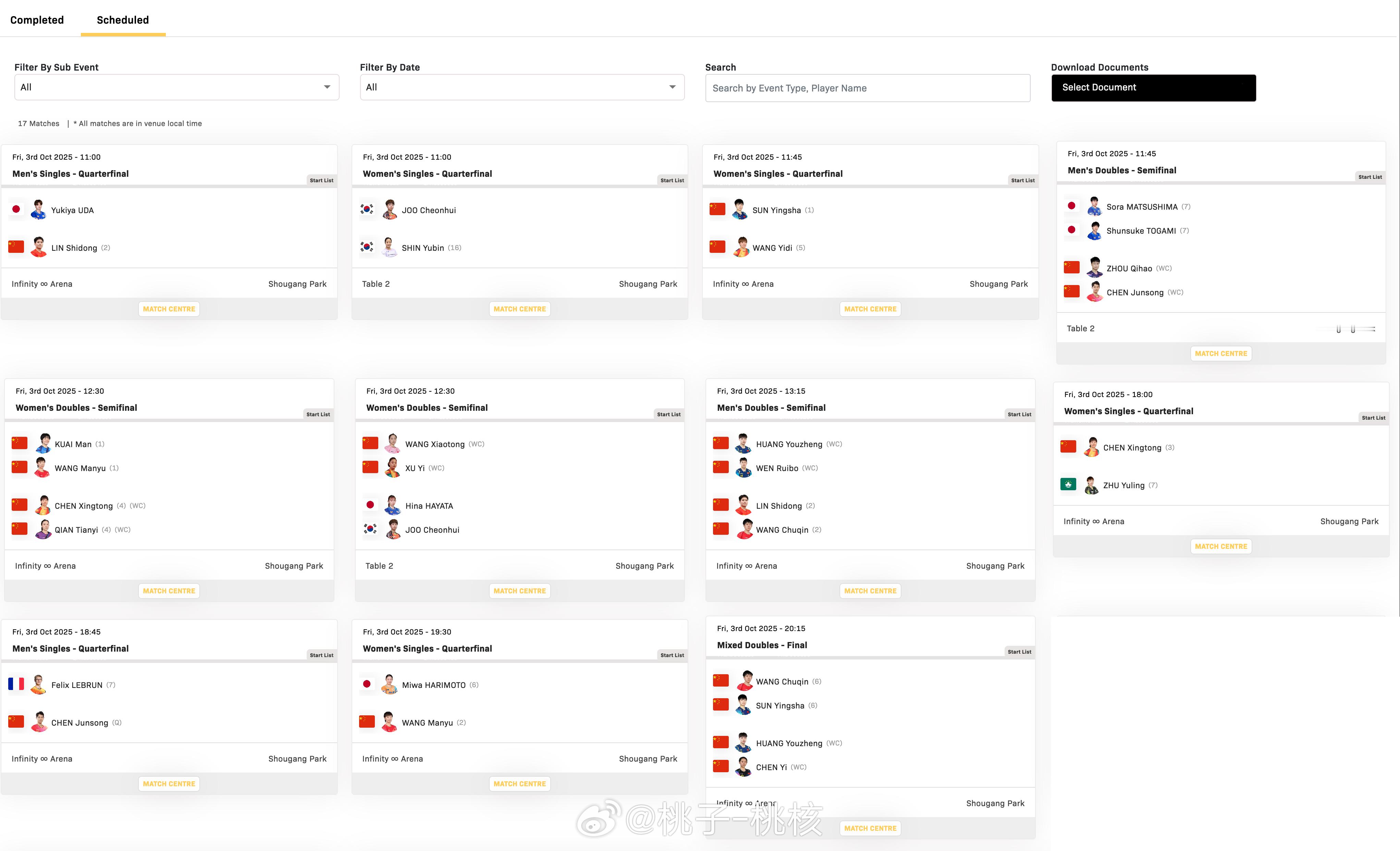 中国大满贯3日完整赛程请详见图片。