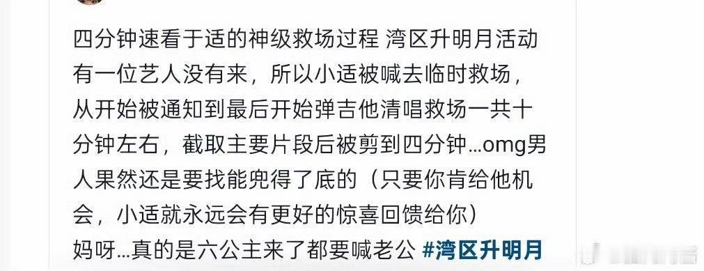 谁刚开始看还以为于适在给自己加戏?直到后来才知道,六公主现场临时缺人,他是被突然拉上去救场的! 更牛的是,没耳返、听不见自己声音,他清唱照样稳得一批,气息稳到像开了原声。这哪是临时救场,分明是实力兜底!能扛住这种突发场面,既显唱功又露沉稳劲儿,于适这“六边形战士”的头衔,真是越品含金量越足,太让人佩服了!