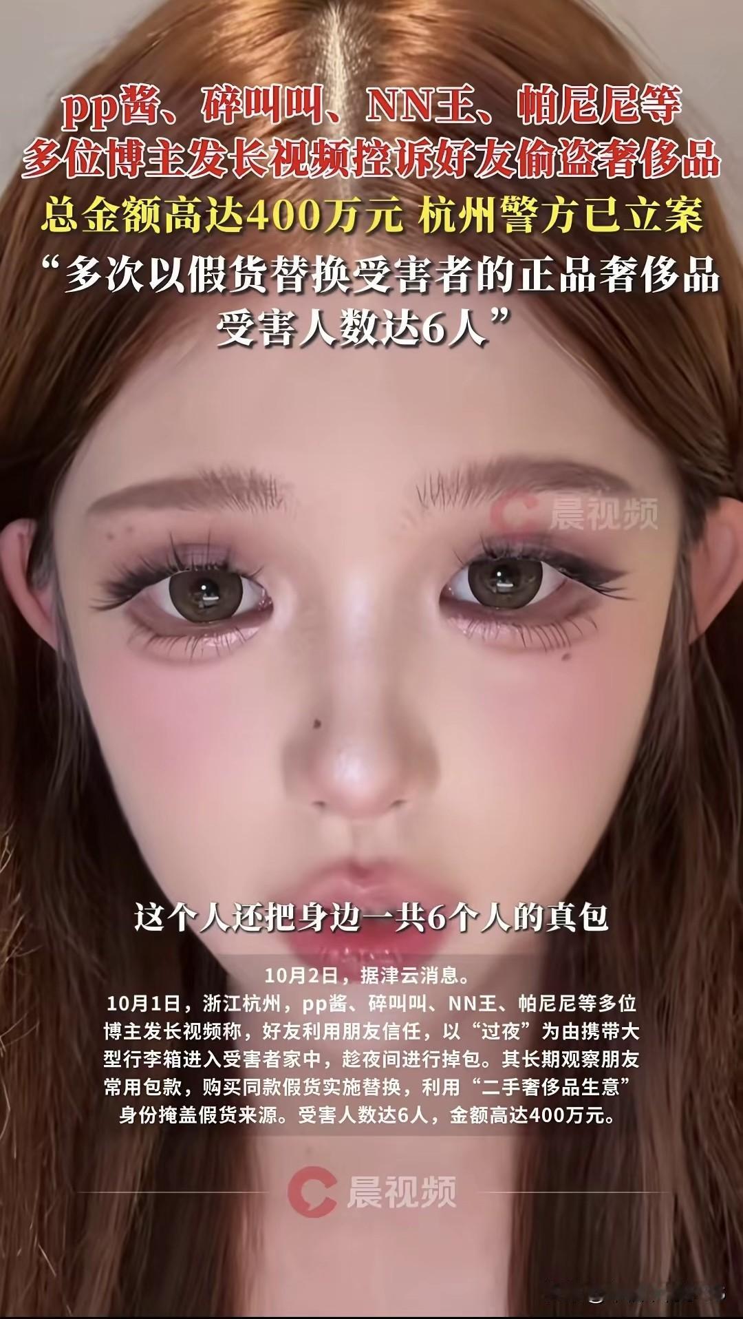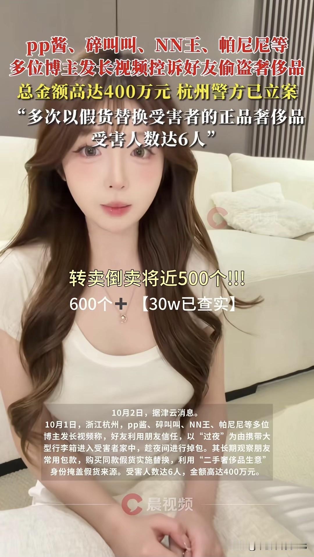 网红圈出了个现实版“偷天换日”,一个叫小鱼丸子的网红伪装成富家女,以借宿的名义跑到朋友家里,把人家的正品奢侈品全换成高仿假货,至少6名博主受害,涉案金额高达600万! 这姐们先假装自己是有钱人家的小姐,然后以借宿的名义,拖着超大行李箱就往受害博主家里钻。表面上是跟姐妹们聚会,背地里却在偷偷观察人家常用的包款,针对性定制高仿假货。等到夜深人静的时候,就把真包换成假包,再把真包通过二手渠道卖掉,整个流程“一条龙”服务,玩得那叫一个溜。 其中损失最惨的是博主@萨拉米帕尼,家里的爱马仕包、珠宝等贵重物品被换了个遍,价值超过300万,最后就剩下3个租来的假包,想想都心疼! 现在多名博主已经确认报案,案件也进入正式调查阶段,对此你怎么看?
